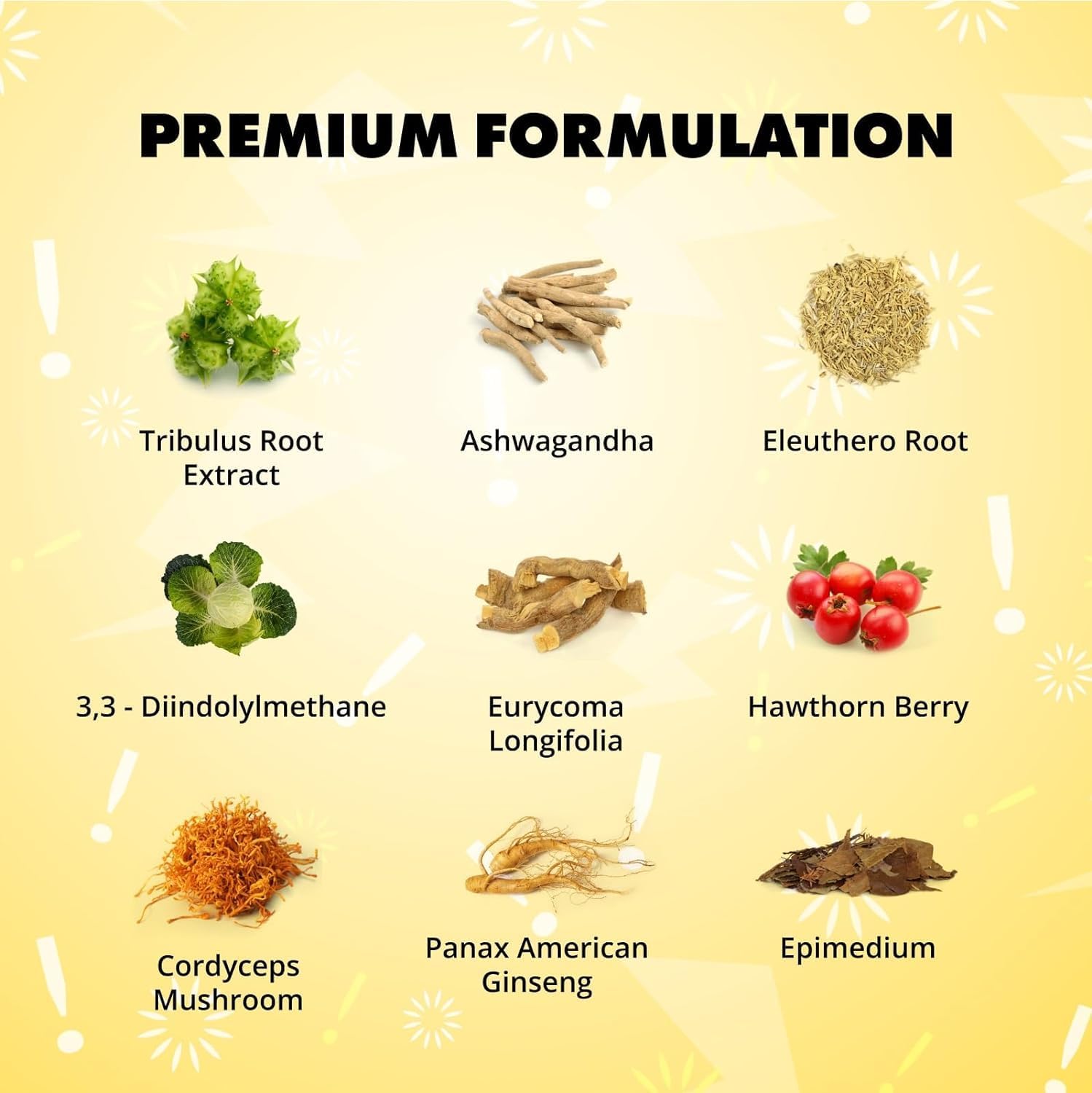 Natural Formula For Men: Our Testosterone Booster Is Packed With Ashwagandha (Ksm-66), Tribulus Extract, American Ginseng Root, And Other Extracts To Help Support Gains, Energy And Stamina