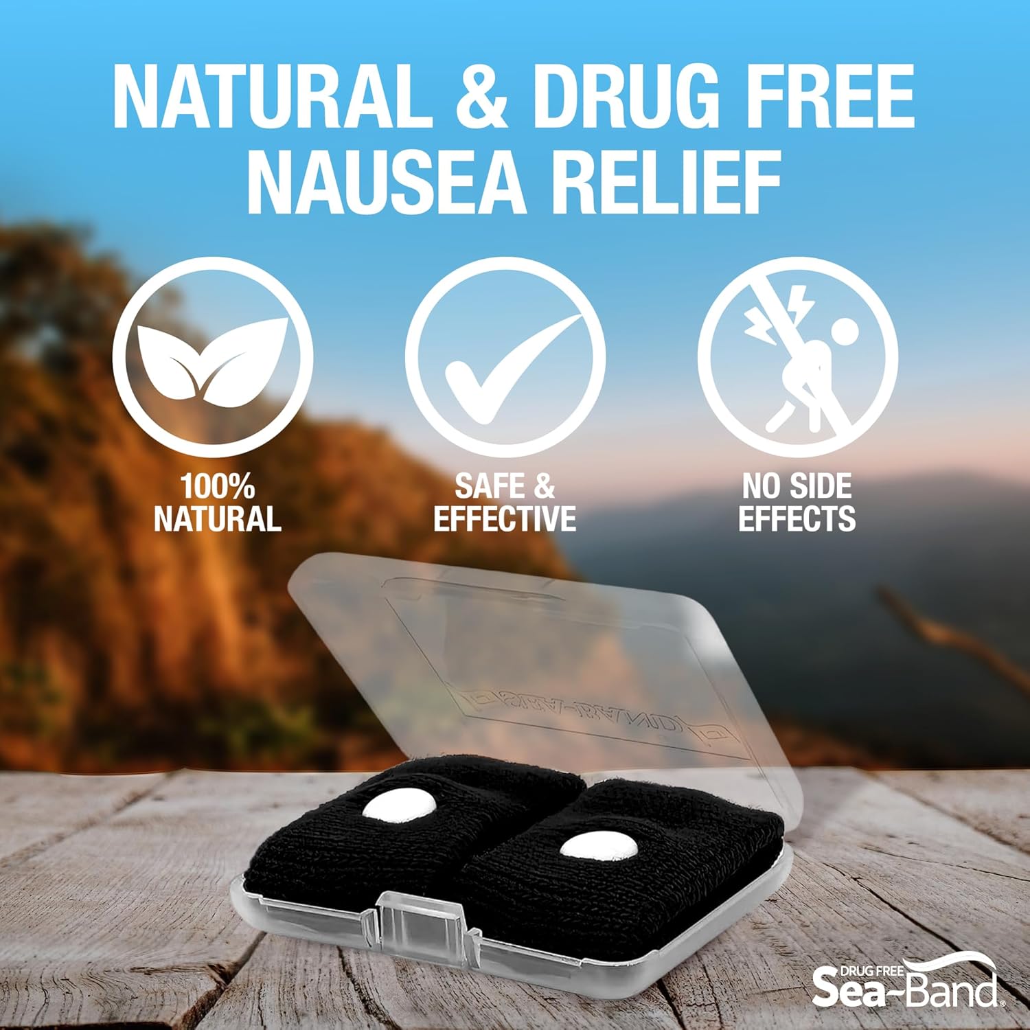 Sea-Band Travel & Motion Sickness And Nausea Relief Acupressure Wristband - Adult (Black), 1 Pair