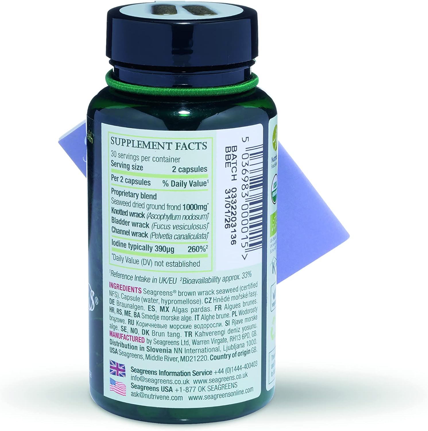 Seagreens Seaweed Food Supplement β 390Mcg Natural Iodine Per Serving, 11 Vitamins, 67 Minerals, Vegan Supplement For Men And Women, Supports Digestion And Metabolism, 60 Capsules