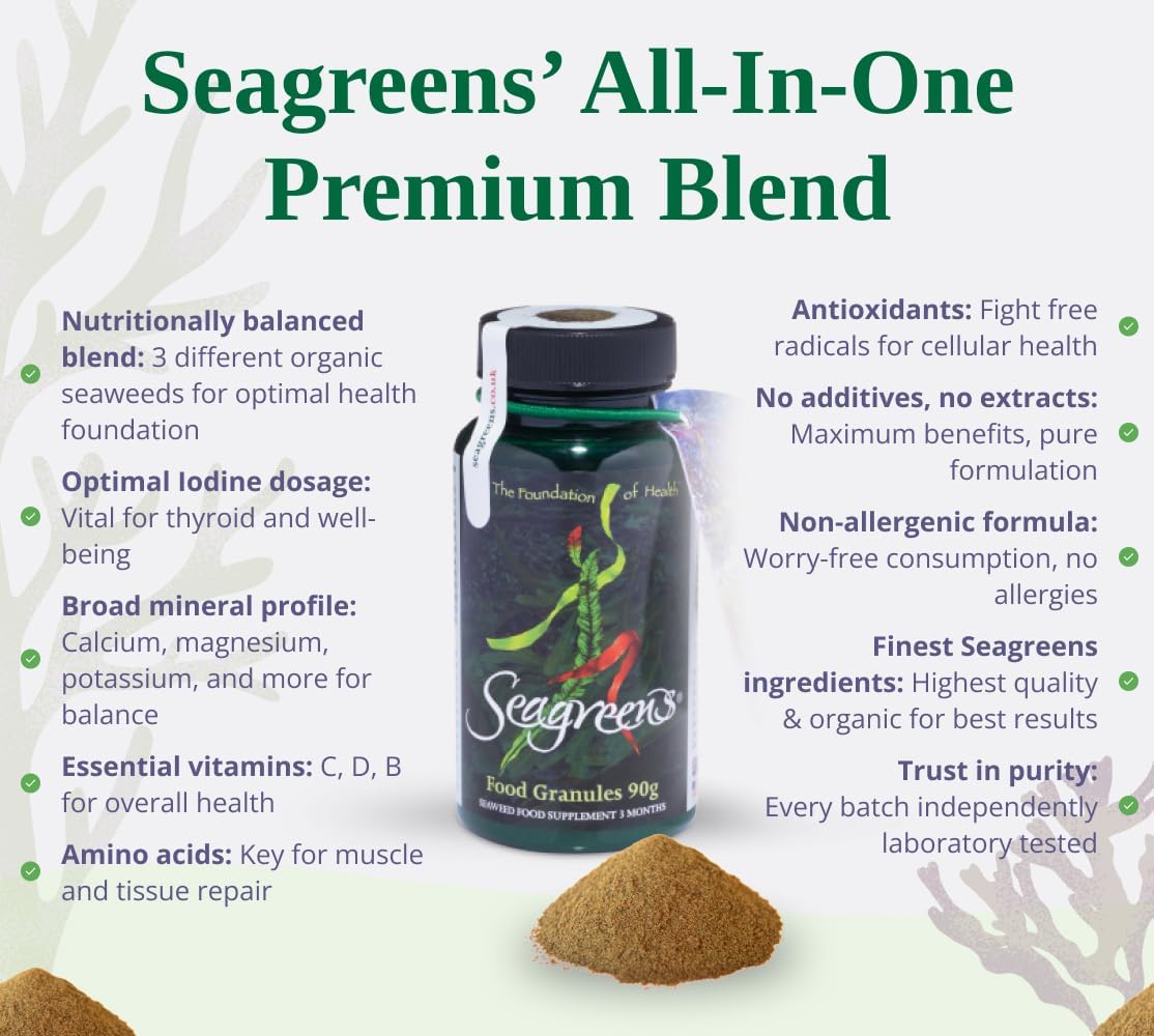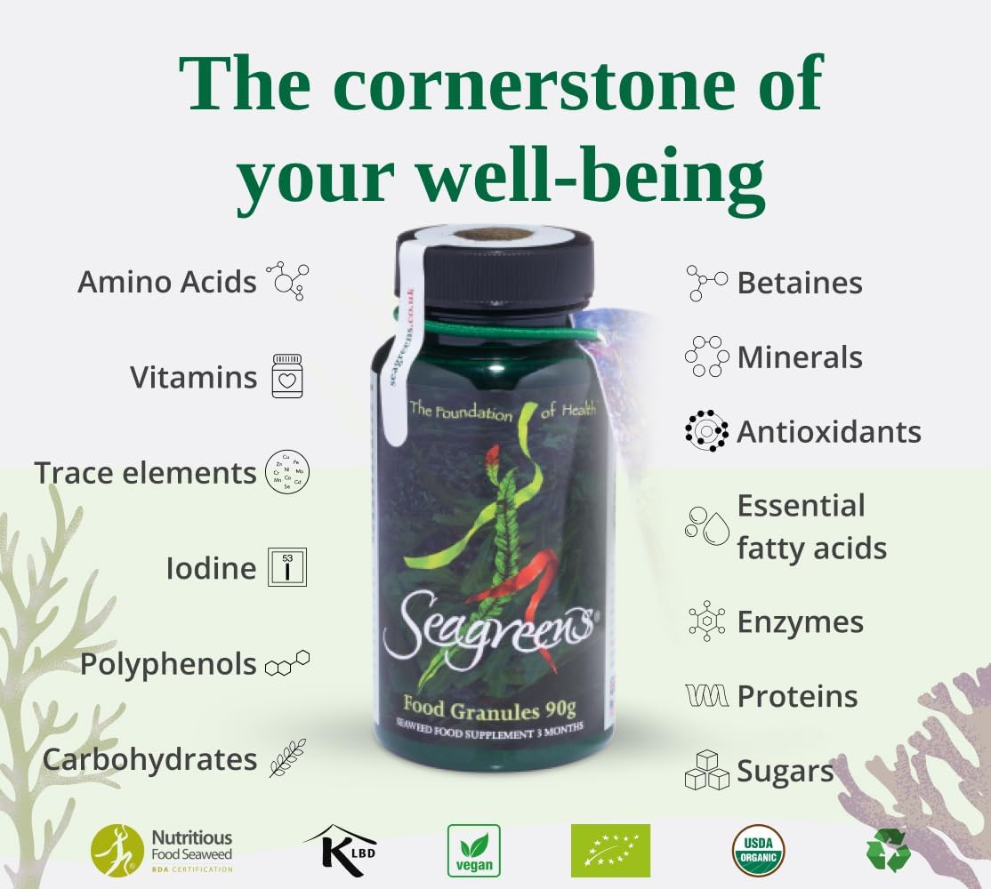 Seagreens Seaweed Food Supplement Granules, 90G, 3 Month Supply, Vegan & Additive-Free, Seaweed Supplement For Humans & Diet Support