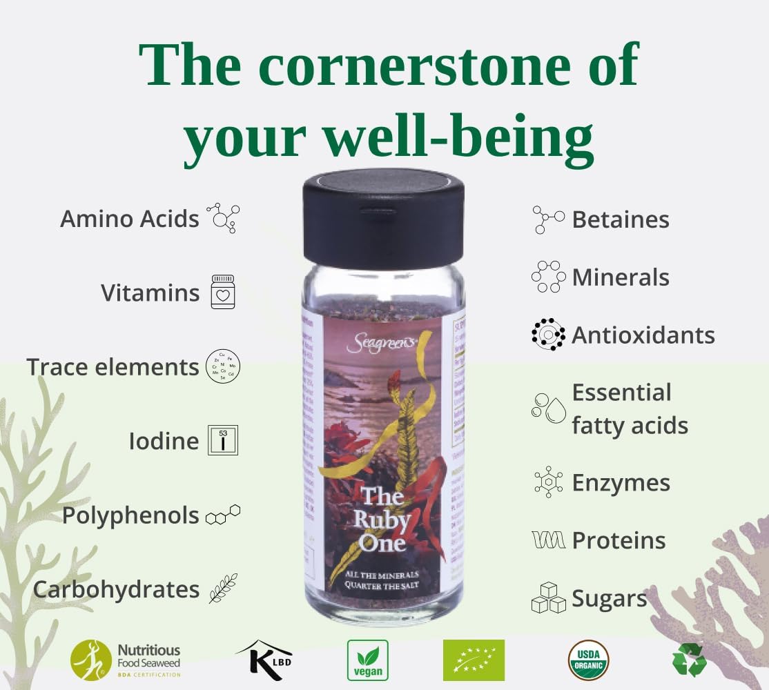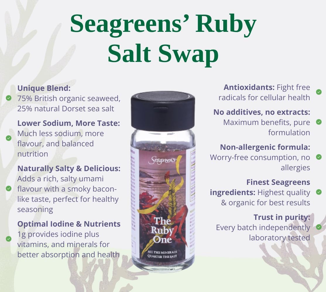 Seagreens Seaweed & Sea Salt, The Ruby One, 55G, 1-6 Months Supply, Table Salt Replacement With Umami Flavour