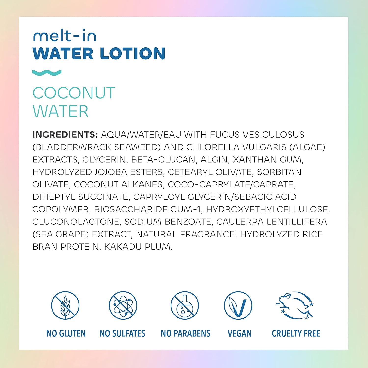 About this item Contains: 1- 4 Ounce Tube of Seaweed Bath Co. Melt-In Coconut Water Scented Water Lotion Consciously created, we use a bounty of marine-derived ingredients - including nutrient-rich, sustainably harvested seaweed - to infuse your skin and hair with the unending power and benefits of the ocean Dive into weightless hydration. This lightweight, concentrated body lotion, infused with nourishing sea grape and barrier-supportive beta-glucan, quickly absorbs to leave skin feeling soft, supple and replenished All Seaweed Bath Co. products are made with natural, marine-derived ingredients. We’re Leaping Bunny certified, cruelty free, vegan, gluten free, paraben free, sulfate free and packaged in post-consumer recycled plastic We embrace the nourishing magic of the ocean in everything we do at Seaweed Bath Co. From sustainably harvested seaweed to the endless gifts of the sea, our natural and effective products energize, inspire and restore  See more product details,Contains: 1- 4 Ounce Tube of Seaweed Bath Co. Melt-In Coconut Water Scented Water Lotion,Consciously created, we use a bounty of marine-derived ingredients - including nutrient-rich, sustainably harvested seaweed - to infuse your skin and hair with the unending power and benefits of the ocean,Dive into weightless hydration. This lightweight, concentrated body lotion, infused with nourishing sea grape and barrier-supportive beta-glucan, quickly absorbs to leave skin feeling soft, supple and replenished,All Seaweed Bath Co. products are made with natural, marine-derived ingredients. We’re Leaping Bunny certified, cruelty free, vegan, gluten free, paraben free, sulfate free and packaged in post-consumer recycled plastic,We embrace the nourishing magic of the ocean in everything we do at Seaweed Bath Co. From sustainably harvested seaweed to the endless gifts of the sea, our natural and effective products energize, inspire and restore