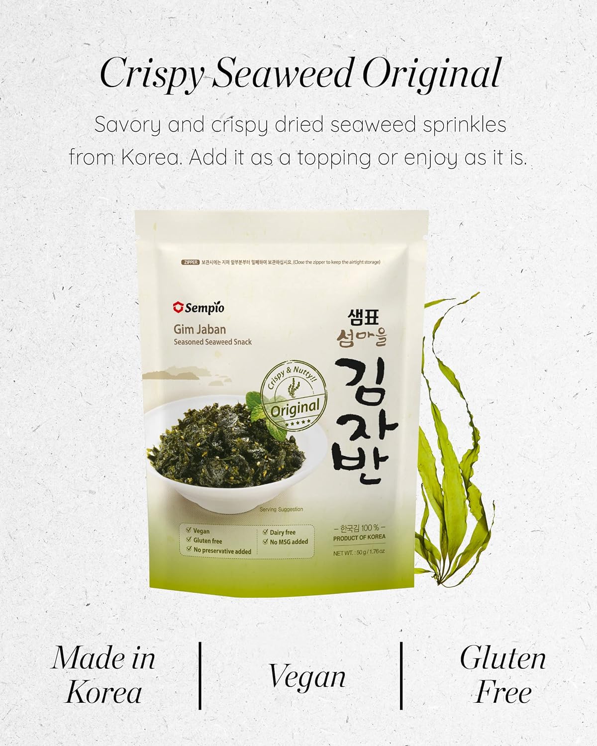 Seaweed Snack 50G Sempio Original Savory Seasoned Seaweed Sprinkles, Gim Jaban. Healthy Korean Snack. Vegan, No Preservatives, Dairy-Free