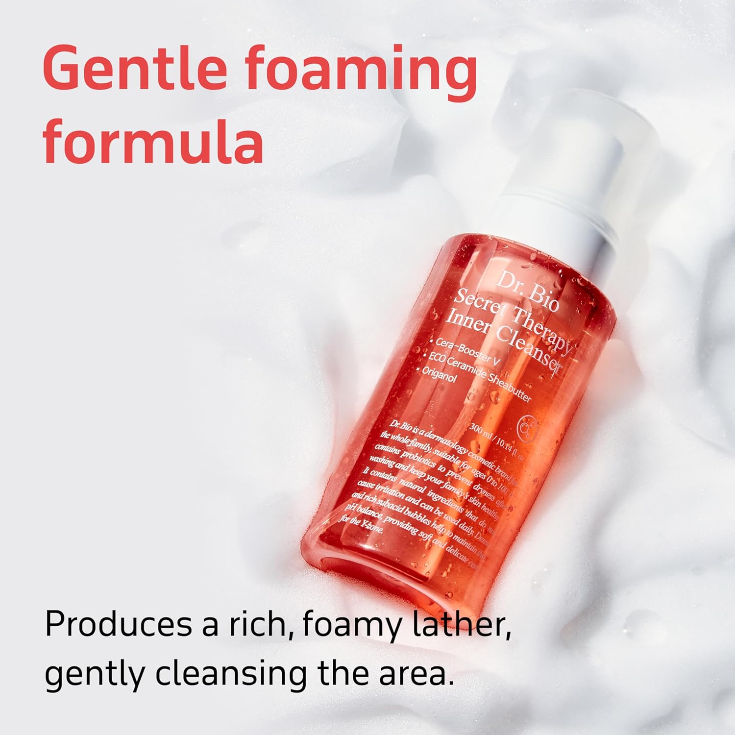 About this item ALL-AGES PROBIOTIC INNER CLEANSER: This mild, slightly acidic inner cleanser is safe and effective for everyone, from children to adults. It gently cleanses, removing odor-causing bacteria, while our patented Cica Lactobacillus Plantarum soothes and moisturizes delicate skin. SOOTHES AND CARES: This gentle formula with Jeju cypress water, birch sap, and Origano soothes and cares for your intimate area. Plus, eco-ceramide shea butter keeps it moisturized. GENTLE TOUCH FORMULA: Since your intimate area deserves the gentlest touch, we formulated this cleanser with a pH level that mirrors healthy skin and natural, plant-derived ingredients. This ensures a comfortable and irritation-free cleansing. MICRO-BUBBLE TEXTURE: A creamy, rich micro-bubble formula that gently cleanses without irritation. Simply press the pump to create a luxurious foam for an even more effective and convenient cleansing experience. KOREAN DERMA COSMETIC: Dr. Bio is a Korean vegan skincare brand that is safe for sensitive skin. With hypoallergenic and EWG green level certified, it offers safe and effective care for every skin type.  See more product details,ALL-AGES PROBIOTIC INNER CLEANSER: This mild, slightly acidic inner cleanser is safe and effective for everyone, from children to adults. It gently cleanses, removing odor-causing bacteria, while our patented Cica Lactobacillus Plantarum soothes and moisturizes delicate skin,SOOTHES AND CARES: This gentle formula with Jeju cypress water, birch sap, and Origano soothes and cares for your intimate area. Plus, eco-ceramide shea butter keeps it moisturized,GENTLE TOUCH FORMULA: Since your intimate area deserves the gentlest touch, we formulated this cleanser with a pH level that mirrors healthy skin and natural, plant-derived ingredients. This ensures a comfortable and irritation-free cleansing,MICRO-BUBBLE TEXTURE: A creamy, rich micro-bubble formula that gently cleanses without irritation. Simply press the pump to create a luxurious foam for an even more effective and convenient cleansing experience,KOREAN DERMA COSMETIC: Dr. Bio is a Korean vegan skincare brand that is safe for sensitive skin. With hypoallergenic and EWG green level certified, it offers safe and effective care for every skin type