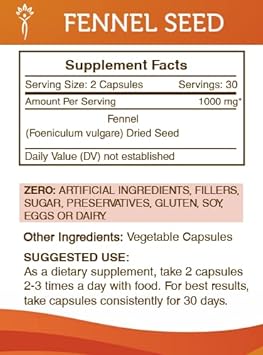 Secrets Of The Tribe Fennel Seed 60 Capsules, 1000 Mg, Fennel Seed (Foeniculum Vulgare) Dried Seed (60 Capsules)