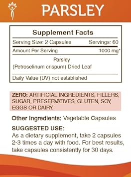 Secrets Of The Tribe Parsley 120 Capsules, 1000 Mg, Parsley (Petroselinum Crispum) Dried Leaf (120 Capsules)