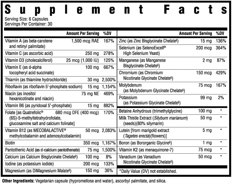 3 >Easily absorbed: Amino acid chelated minerals are easily absorbed and utilized by the body. With trace minerals, including Boron and Vanadium, TMG, and lutein for additional support. Chelated zinc and lutein help to support eye and vision health