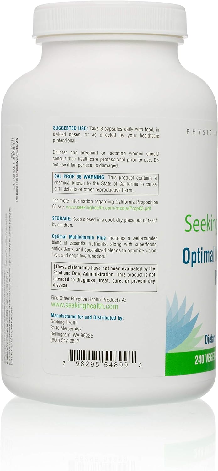 DESCRIPTION : Seeking Health Optimal Multivitamin Plus, Active B Vitamins and L-5-MTHF, Riboflavin, B6, Bioavailable Folate and B12, CoQ10, Methylation Support, Vegetarian (240 Capsules)