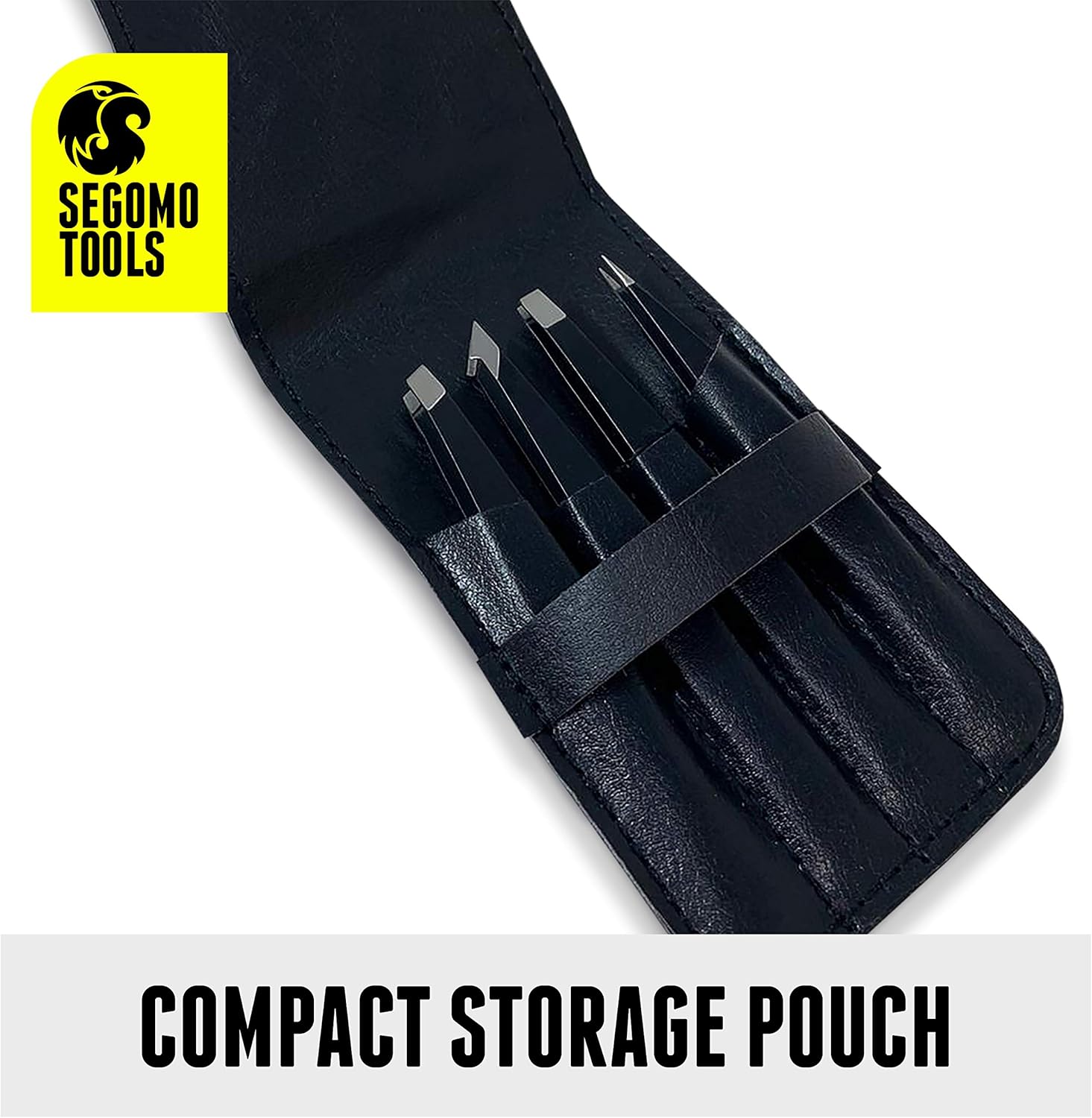 Segomo Tools 4 Piece Tweezer Set - Tweezers For Women - Ingrown Hair Removal Kit - Eyebrow Plucker - Precision Tweezers - Flat, Angled, Slant & Pointed Tweezers - Tw004