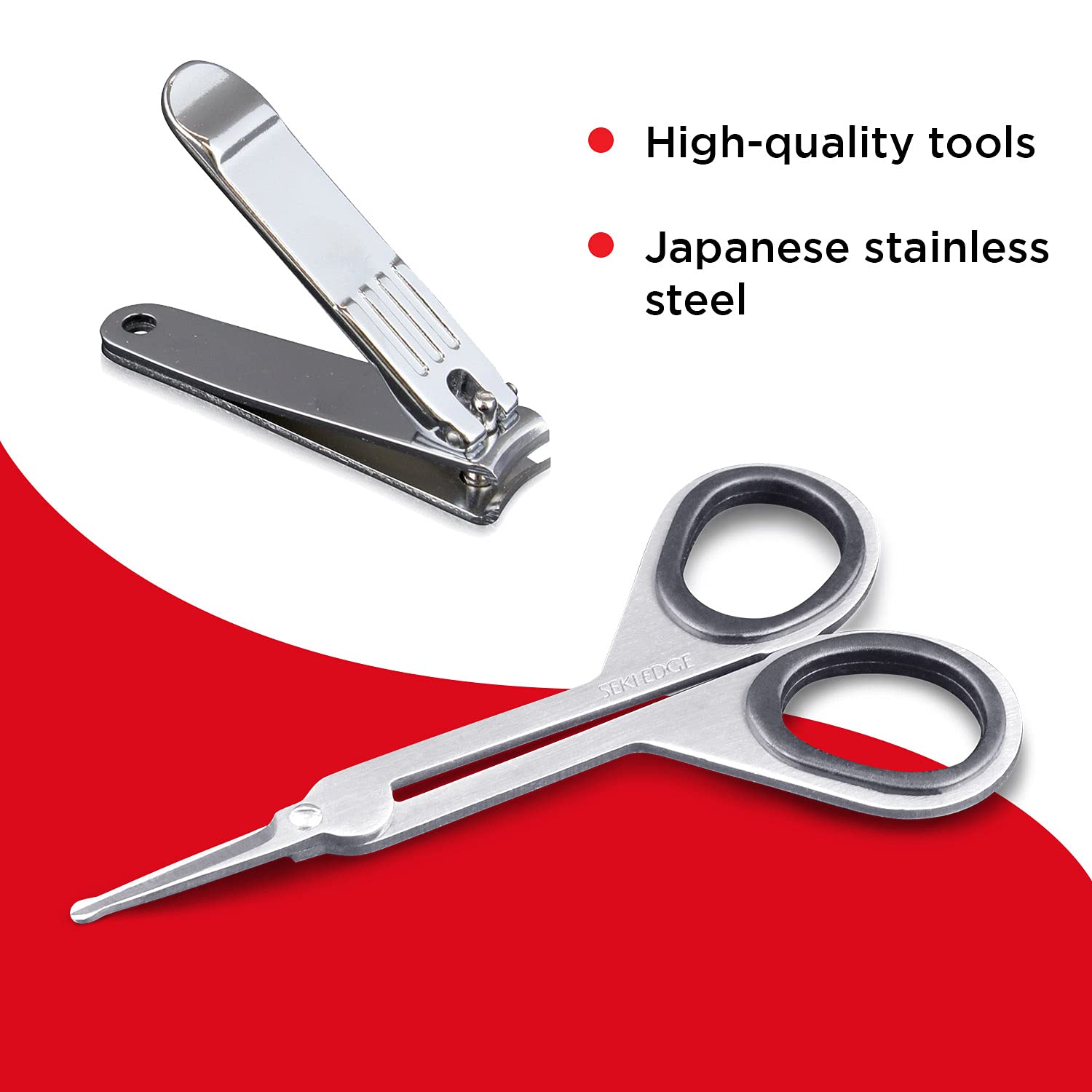 Deluxe Grooming Kit Includes; Stainless Steel Nostril Scissor SS 908; Fingernail Clipper SS 101; Toenail Clipper SS 102; Comes In A Sophisticated Carrying Case With Versatile Mesh Pockets And Elastic Bands To Secure Grooming Tools Toe Nail Clippers With Built In Multi Directional Nail File And A Nail Catcher To Easily Contain And Dispose Nail Clippings Fingernail Clippers Are A Smaller Size Then Toe Nail Clippers; Has Built In Nail Catcher To Easily Contain And Dispose Nail Clippings Safety Nose Hair Scissors; Nostril Scissors Have Blunt Tips To Prevent Poking And Rubber Finger Holes For Comfort Centuries Old Craftsmanship; Professional Quality Comes From The Creators Of The Samurai Sword In The Mountains Of Seki Japan; Combines Centuries Old Craftsmanship With Modern Technology To Create The Worlds Finest Tools With Art And Metal See more product details,Deluxe Grooming Kit Includes; Stainless Steel Nostril Scissor SS 908; Fingernail Clipper SS 101; Toenail Clipper SS 102; Comes In A Sophisticated Carrying Case With Versatile Mesh Pockets And Elastic Bands To Secure Grooming Tools,Toe Nail Clippers With Built In Multi Directional Nail File And A Nail Catcher To Easily Contain And Dispose Nail Clippings,Fingernail Clippers Are A Smaller Size Then Toe Nail Clippers; Has Built In Nail Catcher To Easily Contain And Dispose Nail Clippings,Safety Nose Hair Scissors; Nostril Scissors Have Blunt Tips To Prevent Poking And Rubber Finger Holes For Comfort,Centuries Old Craftsmanship; Professional Quality Comes From The Creators Of The Samurai Sword In The Mountains Of Seki Japan; Combines Centuries Old Craftsmanship With Modern Technology To Create The Worlds Finest Tools With Art And Metal