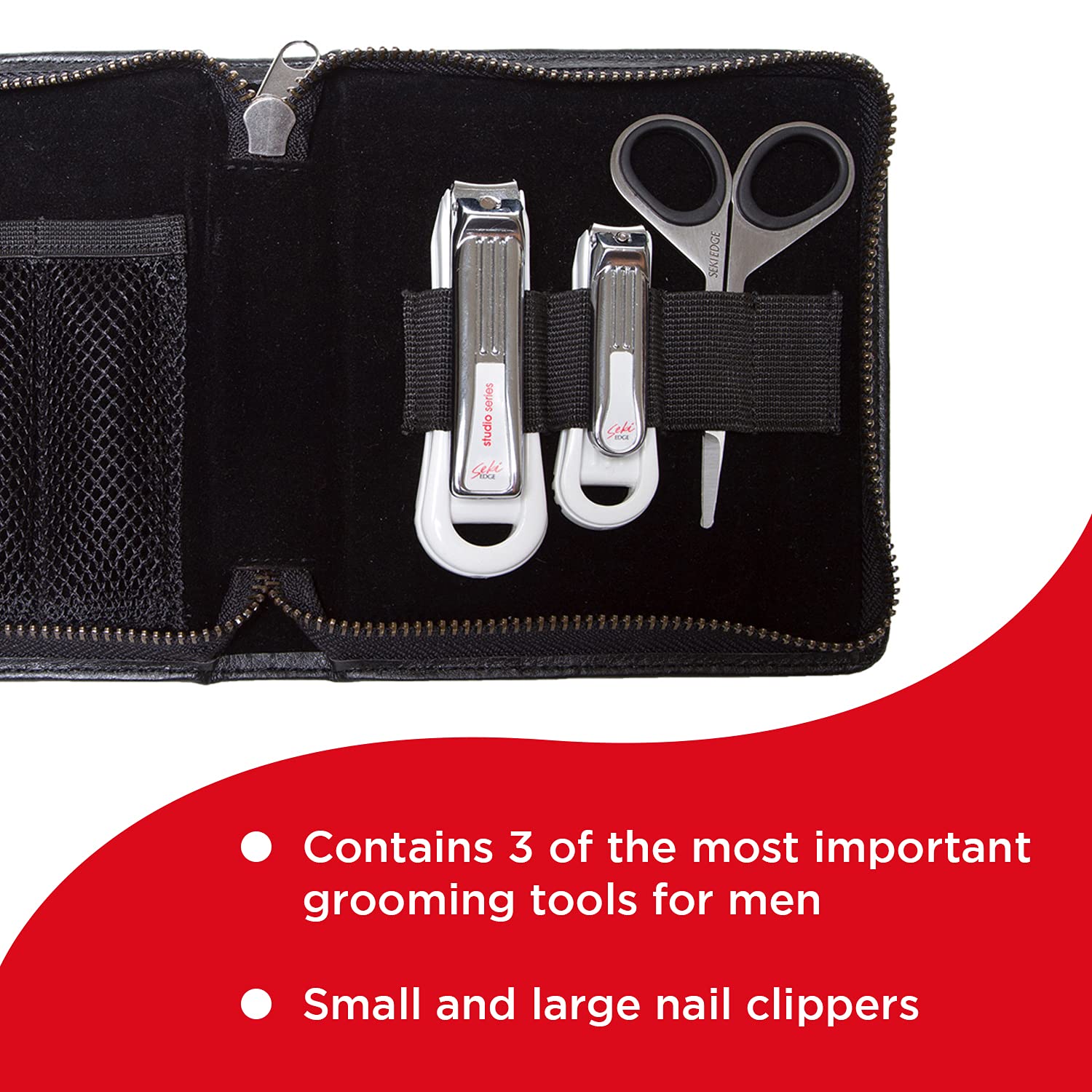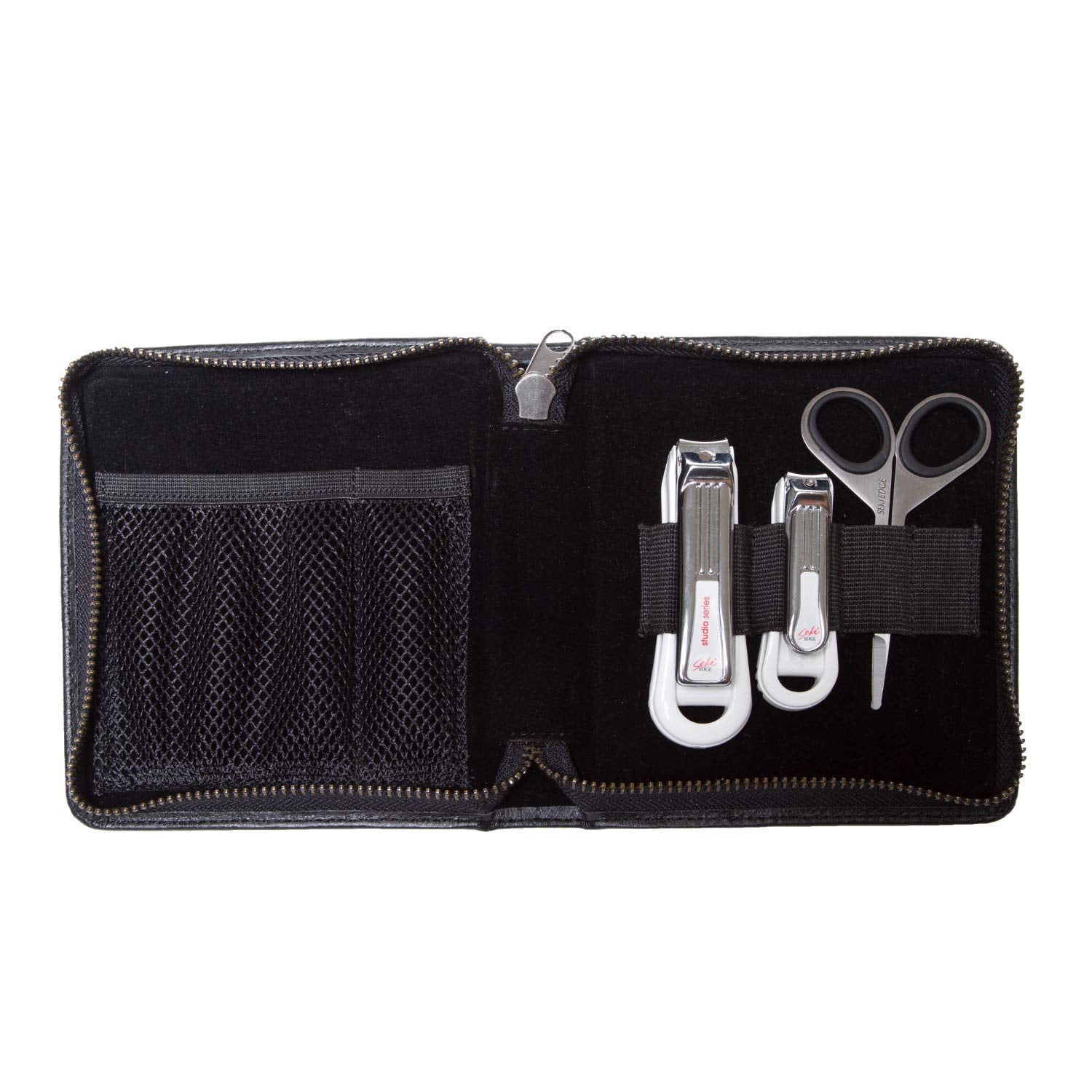Deluxe Grooming Kit Includes; Stainless Steel Nostril Scissor SS 908; Fingernail Clipper SS 101; Toenail Clipper SS 102; Comes In A Sophisticated Carrying Case With Versatile Mesh Pockets And Elastic Bands To Secure Grooming Tools