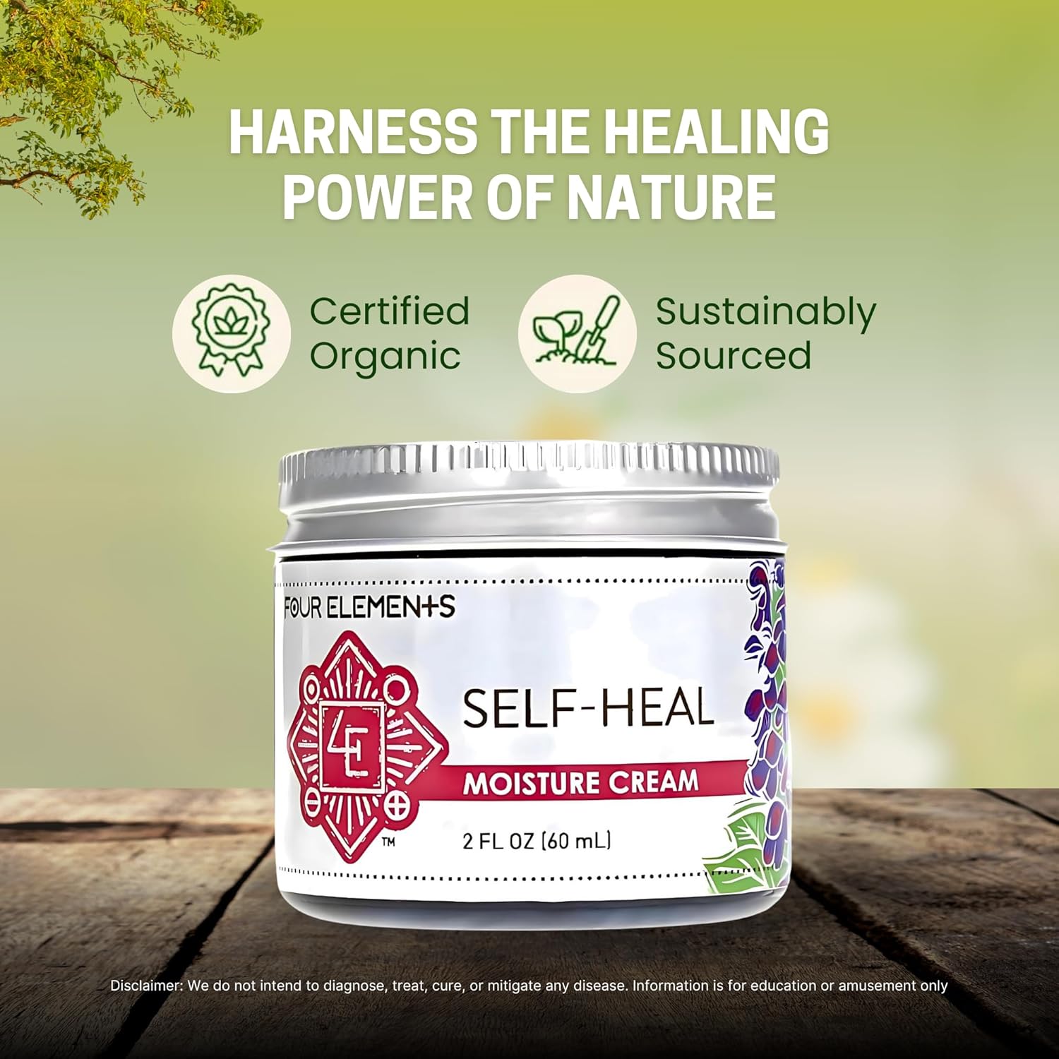 About this item Natural and Organic Ingredients: Our product are contains natural and organic ingredients such as sunflower oil, self heal infusion, beeswax, shea butter, and vitamin E. Self Heal Flower Essence: Another unique aspect of our product is that it contains self heal flower essence this ingredient can help promote healing and rejuvenation of the skin. Moisturizing and Nourishing: The Self Heal Moisture Cream is designed to deeply moisturize and nourish the skin, making it ideal for people with dry or dehydrated skin. You can emphasize how the product can help to leave the skin feeling soft, smooth, and rejuvenated. Elements: sunflower oil, self heal* infusion, beeswax, shea butter*, borax, vitamin E, potassium sorbate, self heal flower essence. *Organic Four Elements Organic Herbals is an all-women owned and operated certified organic farm where all our herbs are meticulous hand-harvested and thoughtfully curated. Grown, crafted and packaged in Wisconsin, USA since 1987. Disclaimer: Four Elements 4E products do not intend to diagnose, treat, cure or prevent any disease.  See more product details,Natural and Organic Ingredients: Our product are contains natural and organic ingredients such as sunflower oil, self heal infusion, beeswax, shea butter, and vitamin E,Self Heal Flower Essence: Another unique aspect of our product is that it contains self heal flower essence this ingredient can help promote healing and rejuvenation of the skin,Moisturizing and Nourishing: The Self Heal Moisture Cream is designed to deeply moisturize and nourish the skin, making it ideal for people with dry or dehydrated skin. You can emphasize how the product can help to leave the skin feeling soft, smooth, and rejuvenated,Elements: sunflower oil, self heal* infusion, beeswax, shea butter*, borax, vitamin E, potassium sorbate, self heal flower essence. *Organic,Four Elements Organic Herbals is an all-women owned and operated certified organic farm where all our herbs are meticulous hand-harvested and thoughtfully curated. Grown, crafted and packaged in Wisconsin, USA since 1987,Disclaimer: Four Elements 4E products do not intend to diagnose, treat, cure or prevent any disease