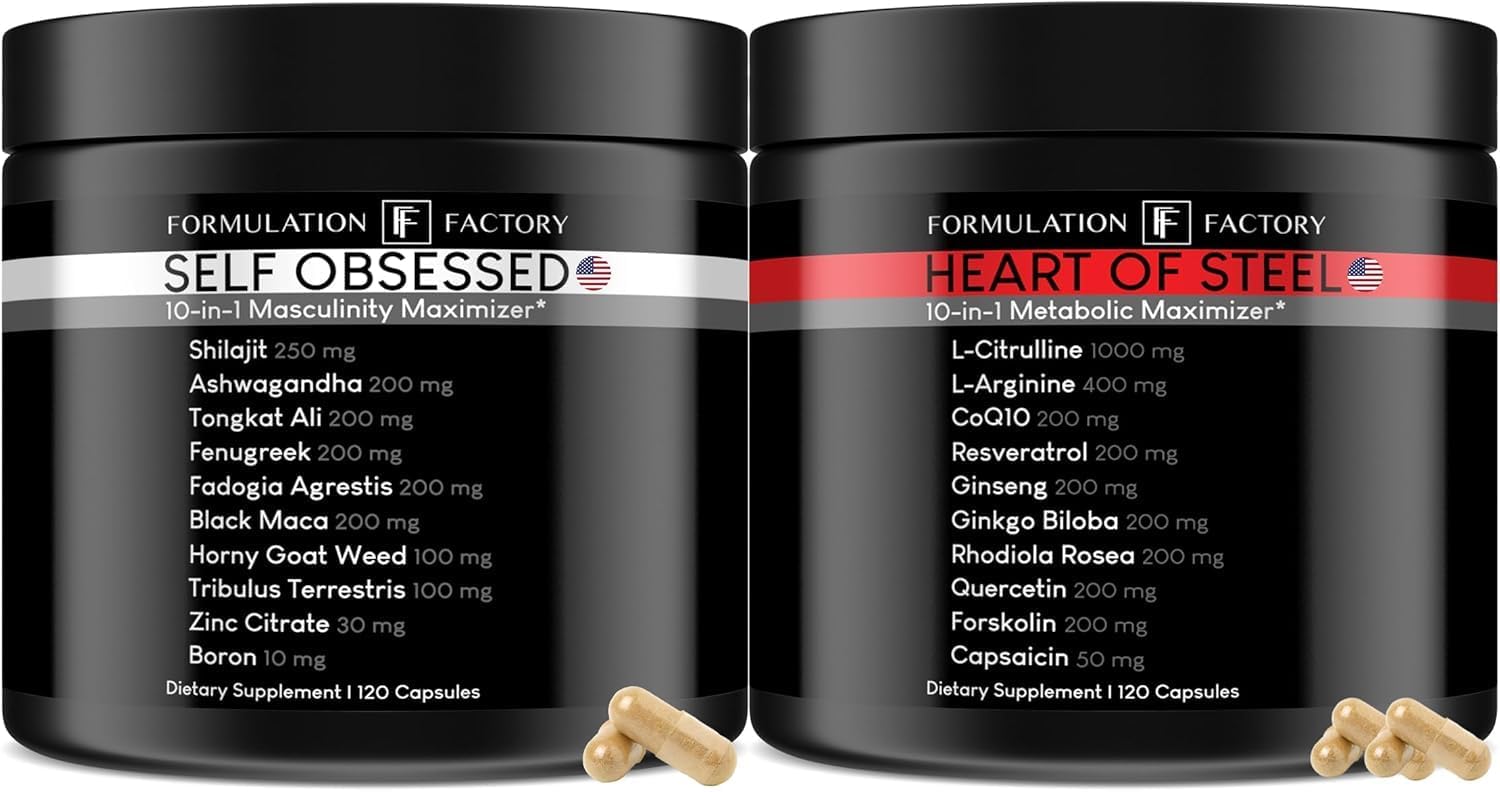 [Muscle Growth And Recovery] Packed With Premium Ingredients Like Shilajit, Fadogia, And Tongkat Ali In Self Obsessed, Plus L-Citrulline And Coq10 In Heart Of Steel, This Duo Supports Muscle Growth, Faster Recovery, And Peak Physical Performance