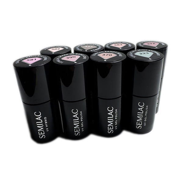 Product Information:Harmonious Palette Of 8 Exquisite Colors That Blend Elegance And Understated Sophistication. Each Shade In This Collection Has Been Thoughtfully Curated To Provide A Timeless Charm To Any Look,Features:The Subtle Beauty Bundle Is A Harmonious Palette Of Eight Exquisite Colors That Blend Elegance And Understated Sophistication. Each Shade In This Collection Has Been Thoughtfully Curated To Enhance Natural Beauty And Provide A Timeless Charm To Any Look,Warning Or Restrictions:Keep Away From Children. Please Read The Usage Carefully. Avoid Skin Contact. Avoid Contact With Eyes. Do Not Inhale Product Vapors Directly. May Cause An Allergic Reaction. Must Be Cured In A Uv/Led Lamp. For Professional Use Only,Product Specification:Semilac 584 Just Nude Uv Gel Polish 7Ml, Semilac 327 Warm Cinnamon Shimmer Uv Gel Polish 7Ml, Semilac 583 Second Skin Nude Uv Gel Polish 7Ml, Semilac 370 Sandy Beige Uv Gel Polish 7Ml, Semilac 581 Delicate Coral Uv Gel Polish 7Ml, Semilac 390 Spark Of Bare Love Uv Gel Polish 7Ml, Semilac 372 Sandal Tree Pink Uv Gel Polish 7Ml, Semilac 323 Ice Mint Shimmer Uv Gel Polish 7Ml,Product Uses:Application Guide,Tips And Advice:Application Guide