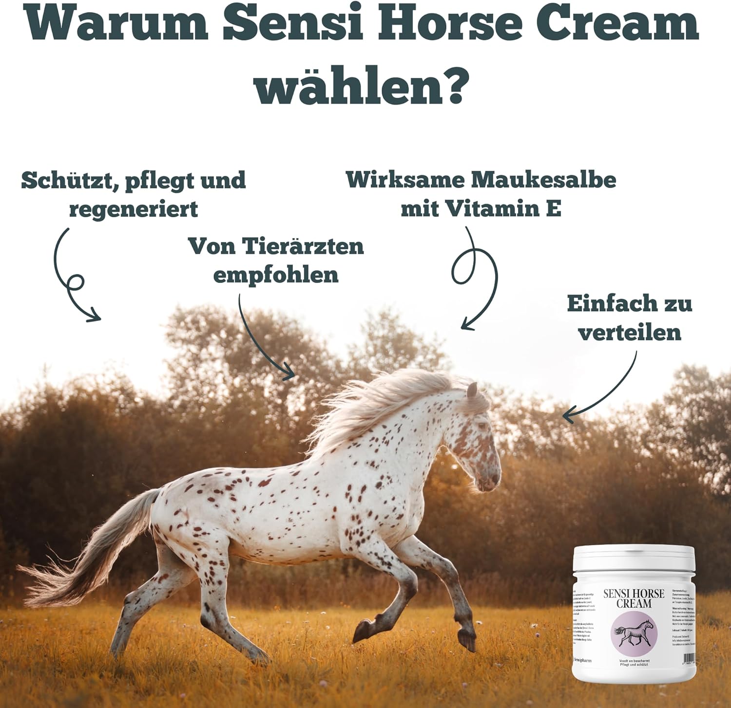 About The Product : Mouse ointment for horses β the skin-friendly Sensipharm mouse ointment 'Sensi Horse Cream' nourishes brittle and cracked skin on the horse's legs and is especially suitable for cavities in the fetlock area