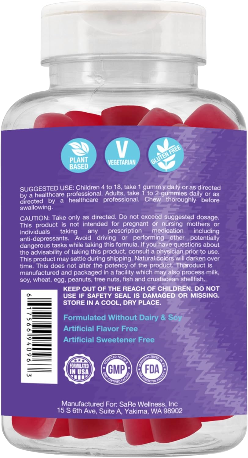 Yummy Strawberry Gummy - our kids love the taste and chewiness of these gummies! Made out of Pectin, they donâ€t stick to your teeth like everything else. 100% Drug Free, Non-Habit forming