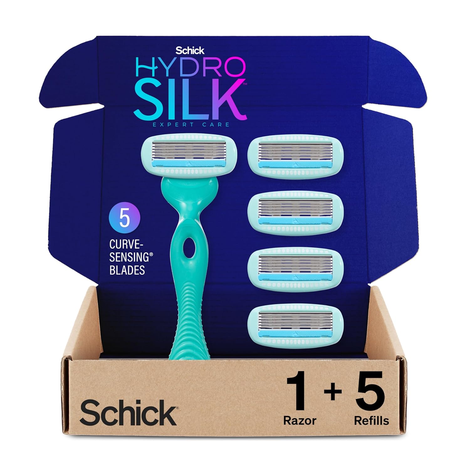 HYDRATES & HELPS PROTECT YOUR SENSITIVE SKIN AGAINST IRRITATION during shaveHYPO ALLERGENIC MOISTURIZING SERUM infused with shea butter to help protect skin against irritationFIVE CURVE SENSING BLADES with unique skin guards to smooth skin throughout every stroke, helping to reduce irritation while providing ultimate closenessDERMATOLOGIST TESTED For lasting hydrationERGONOMIC AQUEOUS SOFT TOUCH RAZOR HANDLE with a soft rubber grip for easy handlingThe Schick Hydro Silk sensitive razor is designed to handle even the most sensitive areas with the technology you expect count from a razor while being dermatologist tested for sensitive skin. Hydro Silk sensitive razor contains skin guards to reduce redness and irritation with 5 Ultra Glide blades. Hydro Silk sensitive razor finishes with high-gloss colored chrome and a soft touch rubber for gripping ease with an easy cartridge loading system