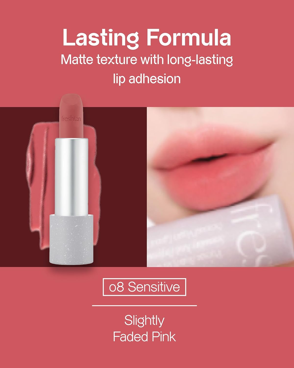 Freshian Sensual Vegan Lipstick Blur (08 Sensitive, 3.3G/0.12Oz) - This Lipstick Provides A Smooth, Lightweight Finish That Enhances Your Natural Beauty While Keeping Your Lips Nourished And Comfortable All Day. Enriched With Flower Complex, A Blend Of Hibiscus, Camellia, And Provence Rose Extracts, It Ensures Your Lips Stay Lively And Moisturized
