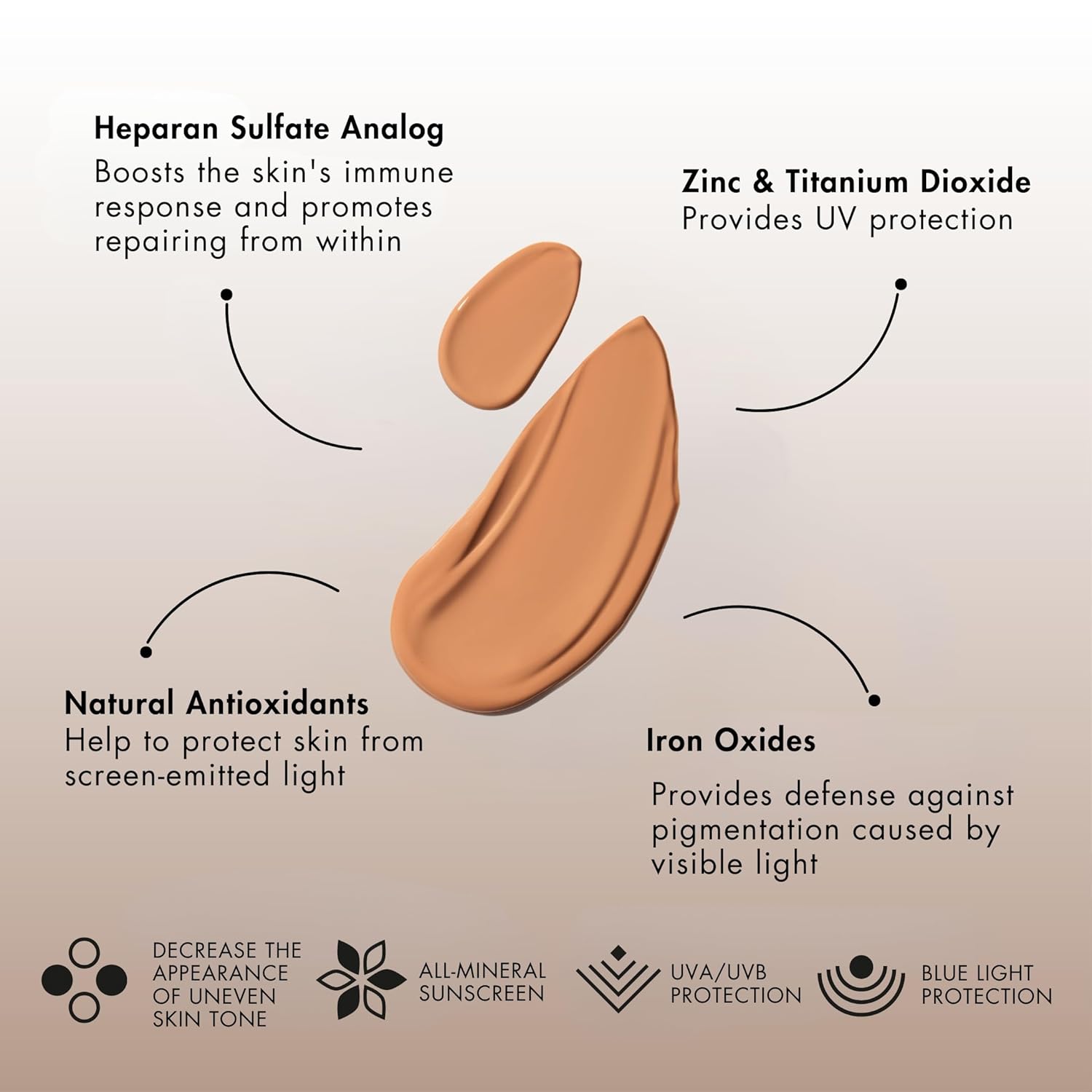 About this item A reef safe mineral sunscreen that filters UV light, providing broad-spectrum protection and UVA/UVB protection without risk of skin sensitization. All mineral sunscreen is formulated with patented Heparan Sulfate Analog (HSA) technology to provide unparalleled hydration and skin protection. Provides broad-spectrum UVA/UVB sun protection and protects skin against the damaging effects of blue light, including light-induced pigmentation Light, breathable formula designed to blend into the skin and provide even coverage. Medium-dark shade is ideal for medium to dark skin tones. See more product details,A reef safe mineral sunscreen that filters UV light, providing broad-spectrum protection and UVA/UVB protection without risk of skin sensitization,All mineral sunscreen is formulated with patented Heparan Sulfate Analog (HSA) technology to provide unparalleled hydration and skin protection,Provides broad-spectrum UVA/UVB sun protection and protects skin against the damaging effects of blue light, including light-induced pigmentation,Light, breathable formula designed to blend into the skin and provide even coverage,Medium-dark shade is ideal for medium to dark skin tones