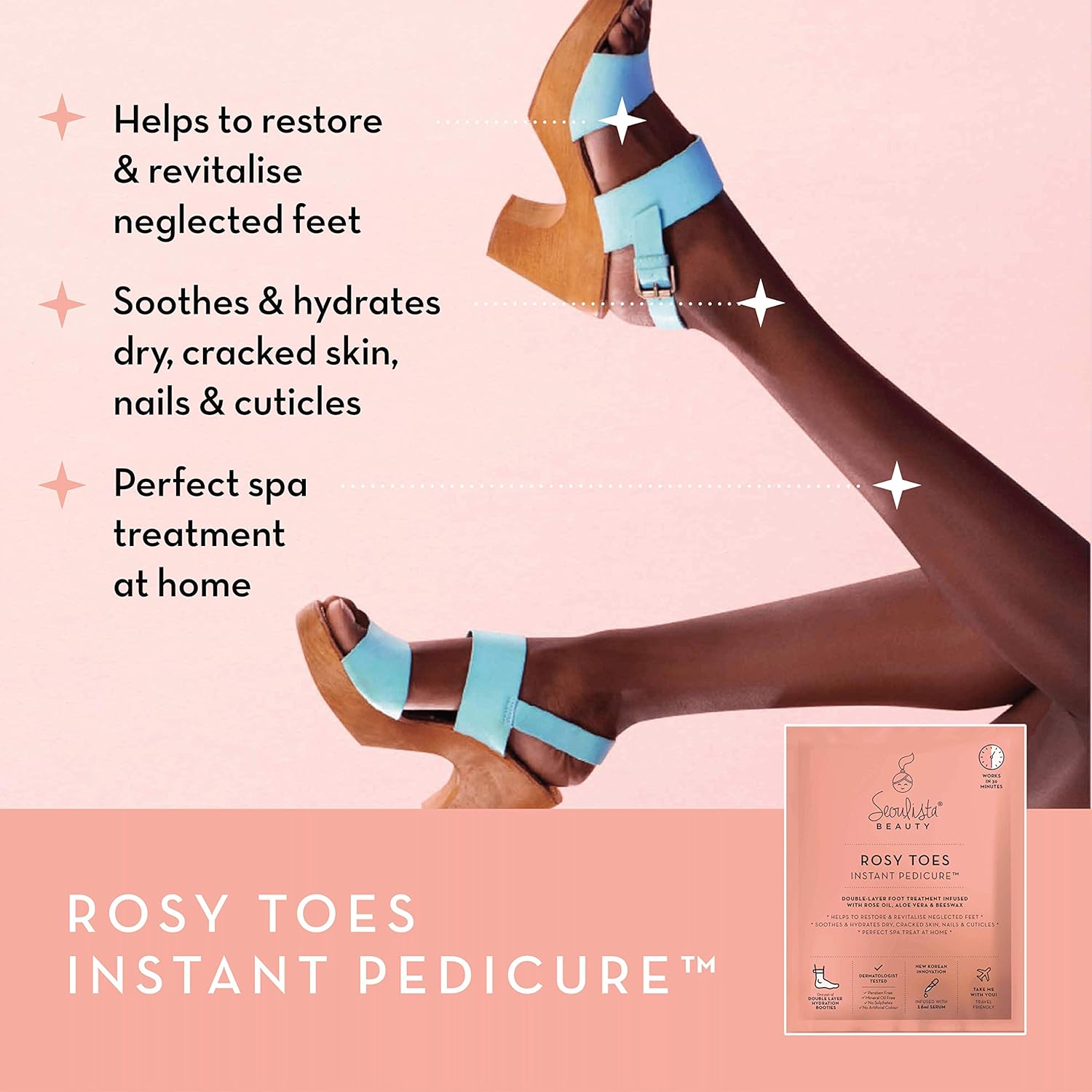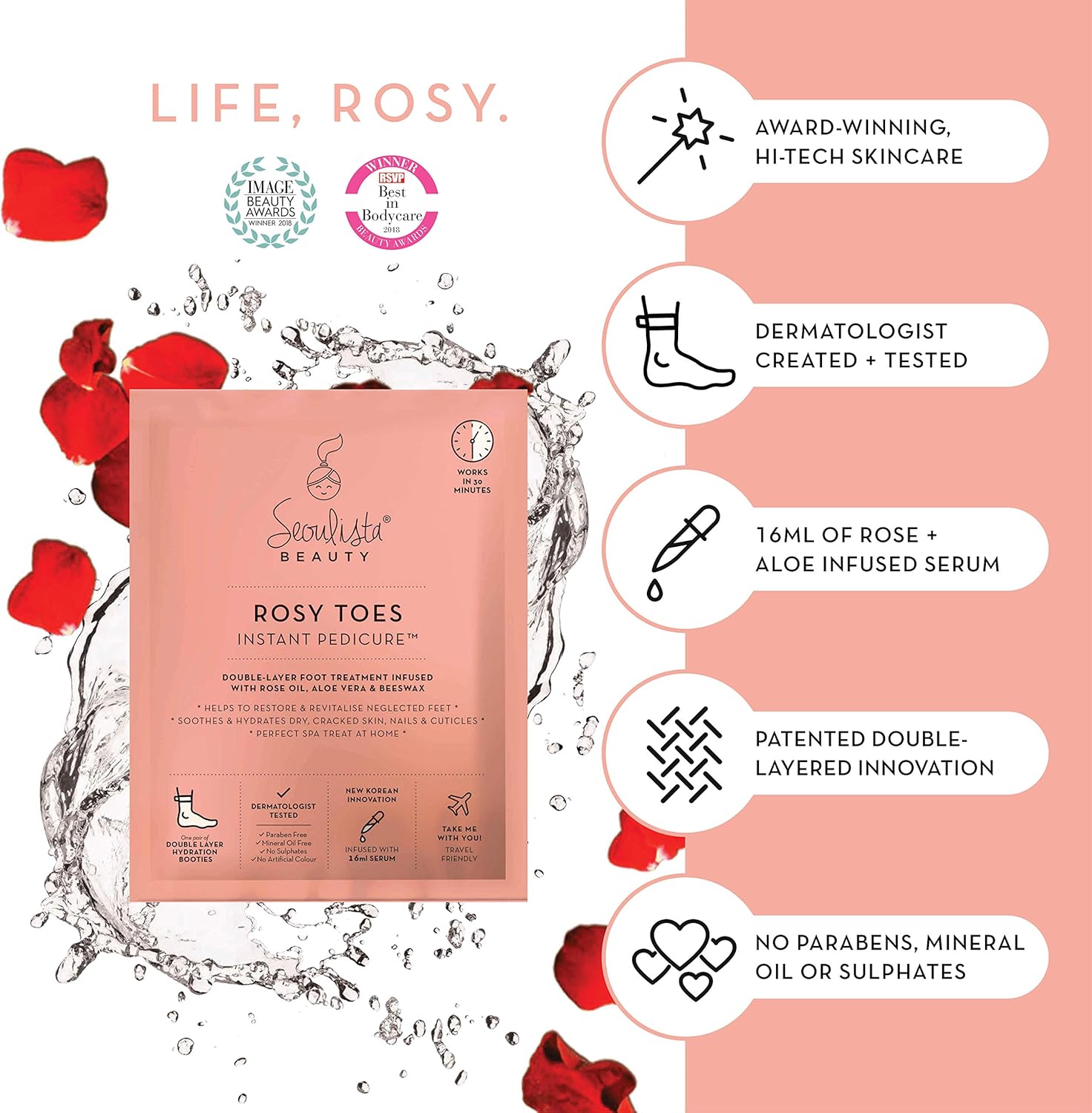 Seoulista Beauty Rosy Toes Instant Pedicure – At Home Foot Mask Treatment — Soothe And Hydrate Dry, Cracked Skin — Revitalise Neglected Feet— With Rose Oil, Aloe Vera And Beeswax — Award Winning