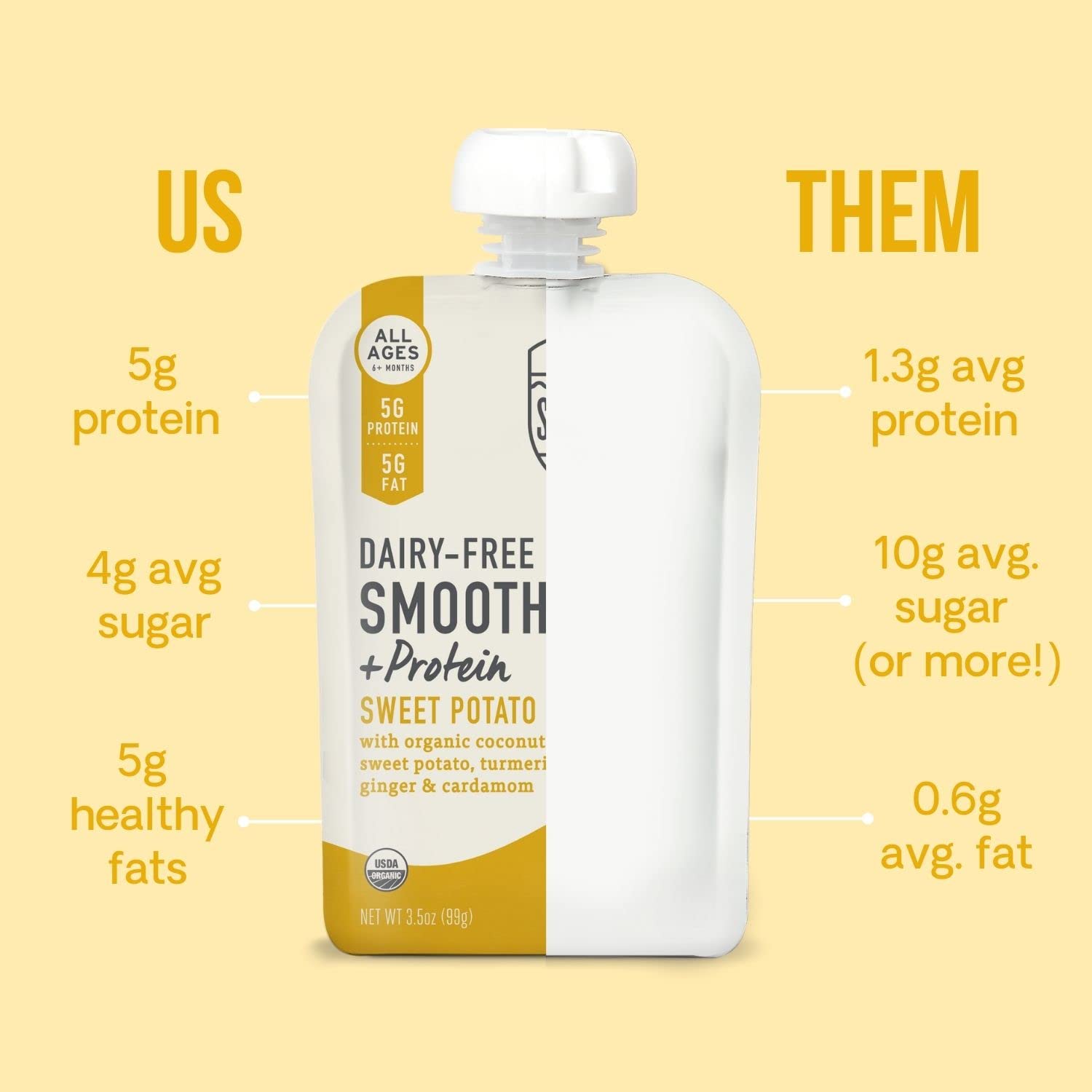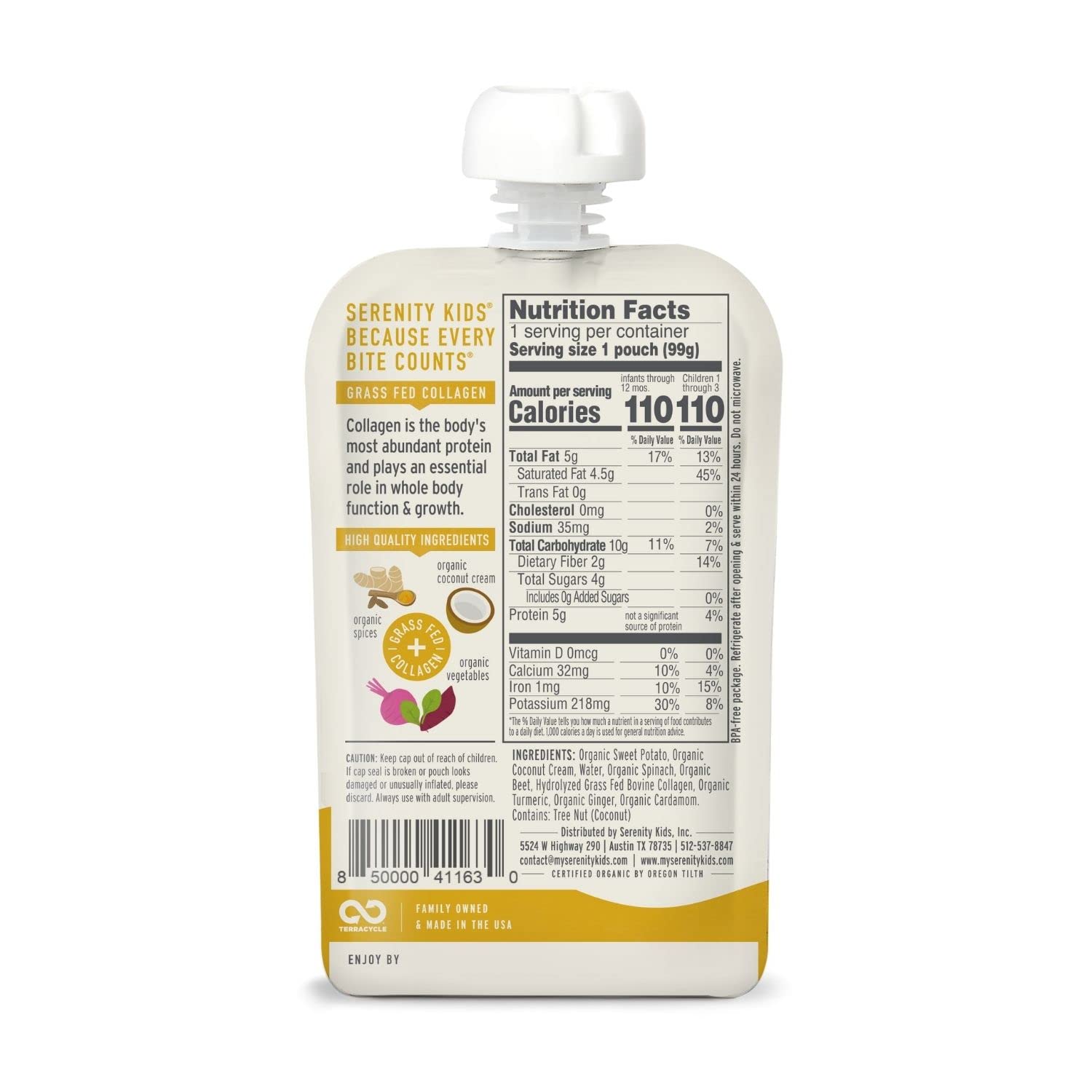 Serenity Kids 6+ Months Dairy-Free Smoothie Baby Food | Usda Organic | Grass Fed Collagen Protein | 3.5 Ounce Bpa-Free Pouch | Sweet Potato Spice | 6 Count