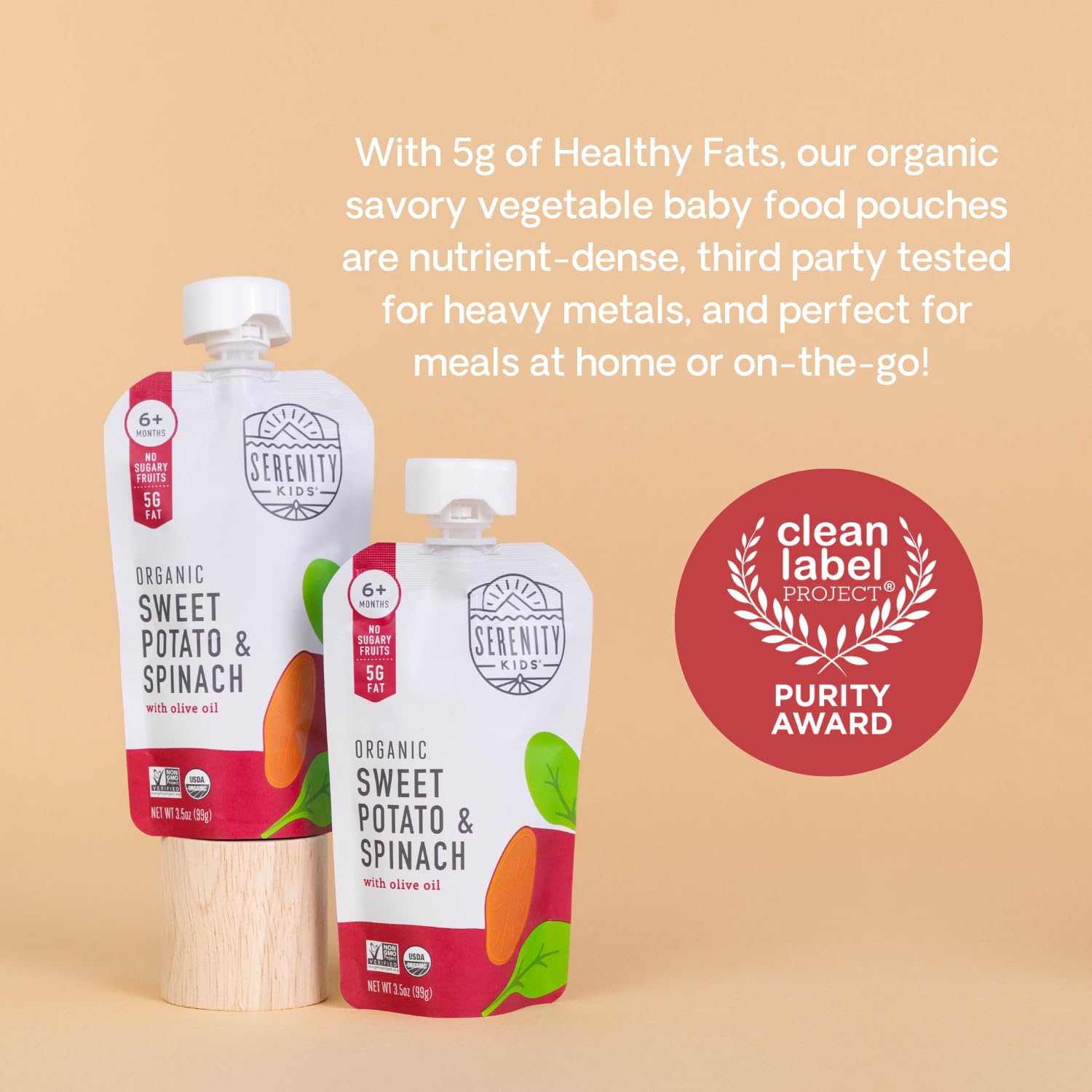 Serenity Kids 6+ Months Usda Organic Veggie Puree Baby Food Pouches | No Sugary Fruits Or Added Sugar | Allergen Free | 3.5 Ounce Bpa-Free Pouch | Sweet Potato & Spinach | 6 Count