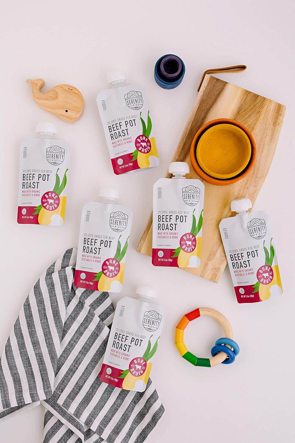 GRASS FED BEEF POT ROAST: Contains 6 pouches of toddler purees made from grass fed meat and ethically sourced bone broth made with organic ingredients, and Certified USDA Organic vegetables, shiitake mushrooms and herbsPERFECT SAVORY BLENDS: Contains more protein and fats than sugar so your little one gets the most nutrition per bite, while also expanding their palate to richer, more savory flavorsNO SUGARY FRUITS: With no added sugars or sugary fruits our veggie-first toddler pouch meals have added bone broth for a protein and collagen boost!MINDFULLY MADE: With bone broth that's rich in easily digestible protein and amino acids that help build connective tissue and joints