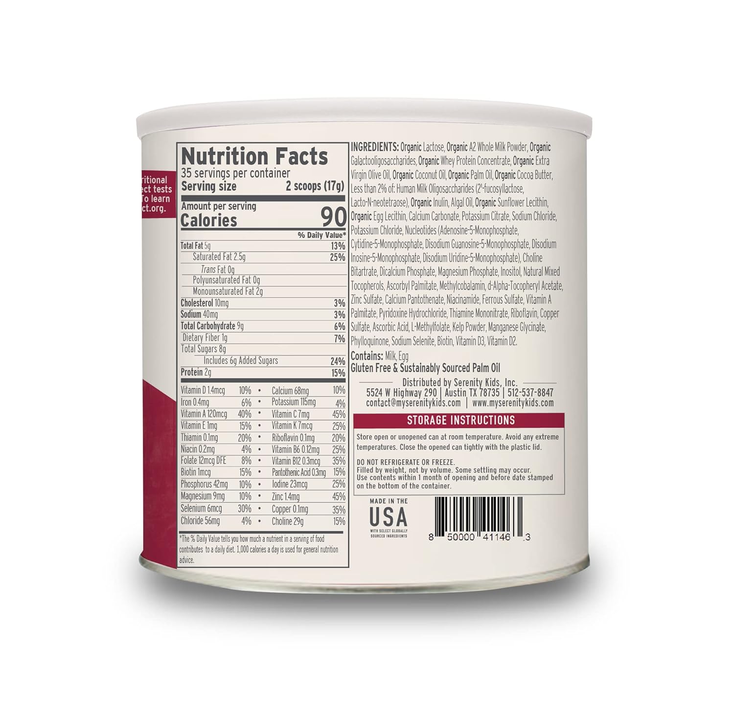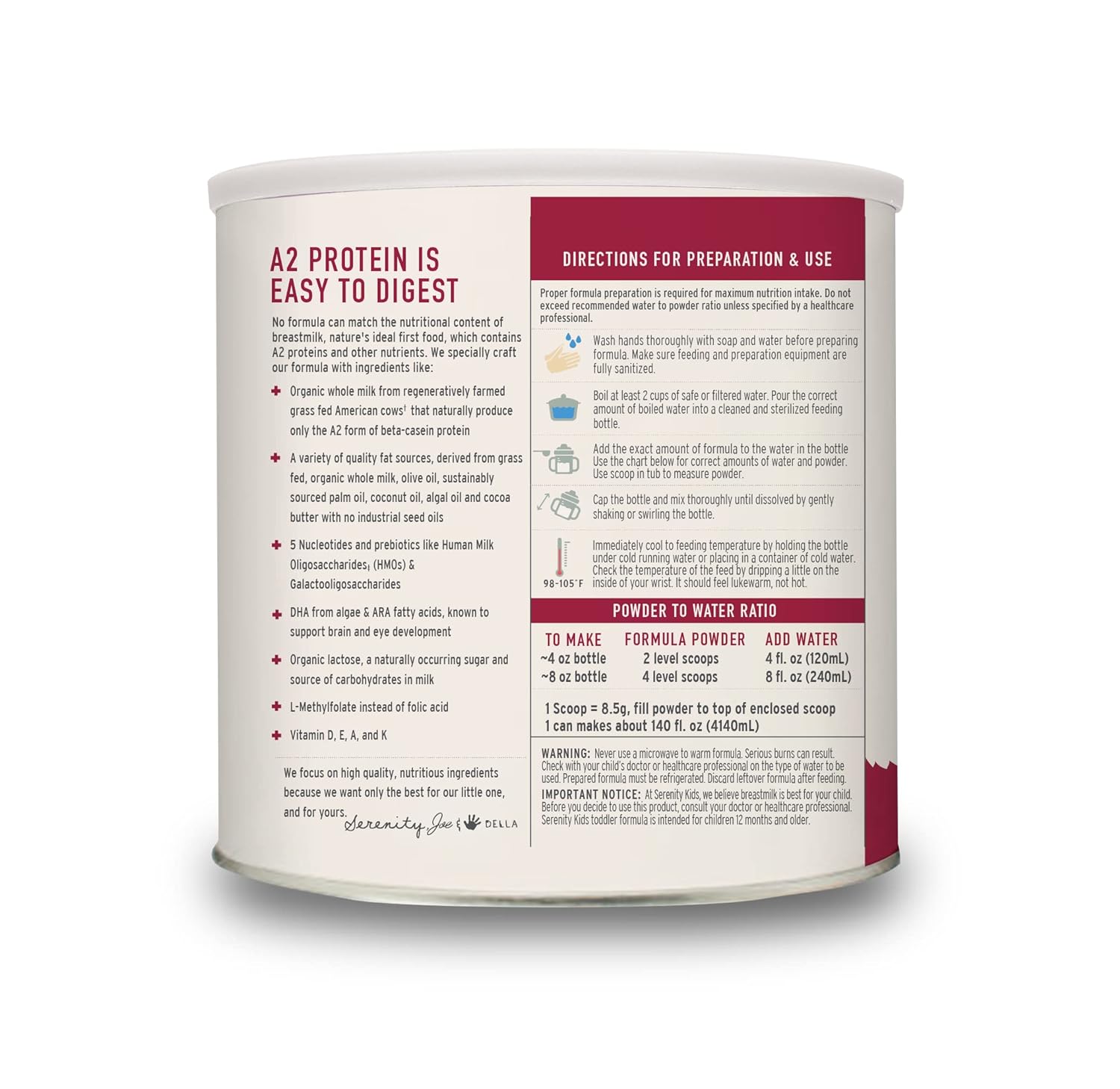 Serenity Kids Toddler Formula Powder Drink Made with Grass Fed Organic A2 Whole Milk | Easy to Digest, Clean Ingredients | Clean Label Project Purity Award Certified | 21 oz Can