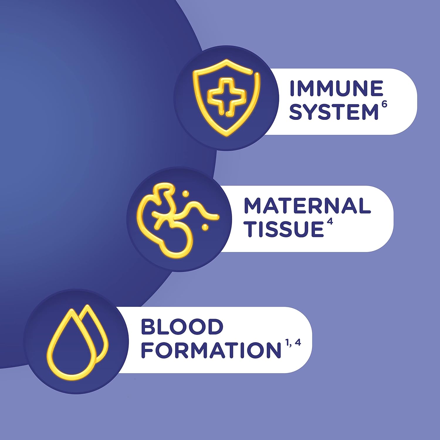 2 > FOLIC ACID - One daily dose contains the recommended 400µg Folic Acid for maternal tissue growth during Pregnancy, 5µg Vitamin D, and Iron which contributes to normal blood formation