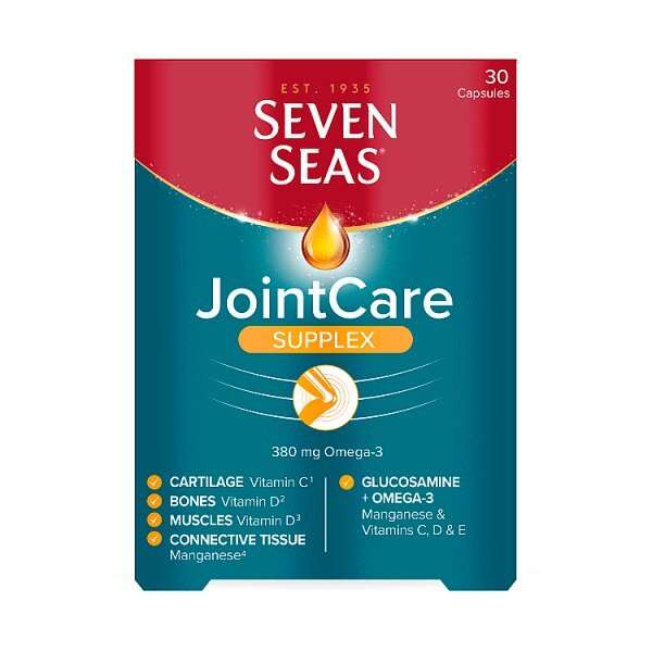 Product Information:Seven Seas Jointcare Supplex Has Been Formulated To Support The Maintenance Of Normal Muscle Fucntion With Vitamin D,Warning Or Restrictions:Do Not Exceed The Recommended Dosage. Food Supplements Are Intended To Supplement The Diet And Should Not Be Regarded As A Substitute For A Varied Diet And A Healthy Lifestyle,Product Specification:Fish Oil, Glucosamine Sulphate Potassium Chloride (Crustaceans), Capsule Shell (Beef Gelatin, Humectant: Glycerol; Colour: Iron Oxide Red), Calcium Ascorbate; Stabiliser: Beeswax Yellow; Emulsifier: Lecithin (Sunflower), Sunflower Oil, Dl-Alpha-Tocopheryl Acetate (Vitamin E), Manganese Sulphate, Medium Chain Triglycerides, Cholecalciferol (Vitamin D),Product Uses:Take Two Capsules Daily With A Cold Drink
