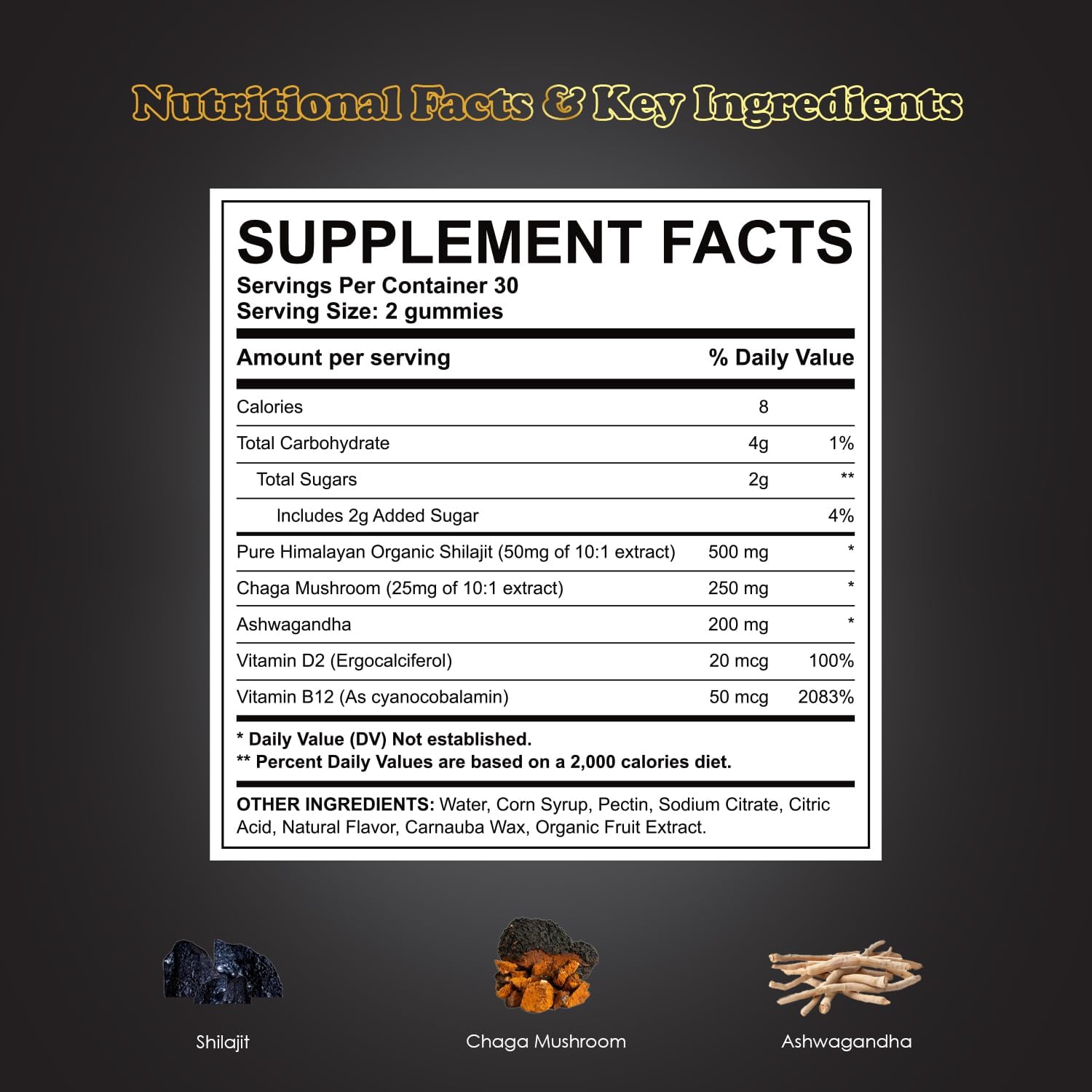 About this item STAR-SHAPED GUMMIES FOR WORK-LIFE BALANCE: These unique star-shaped ashwagandha gummies are crafted to help support your daily work-life balance, making it easier to stay grounded while juggling life’s demands. IMMUNE SUPPORT FOR MEN & WOMEN: Infused with shilajit resin and ashwagandha, these shilajit gummies are designed to help bolster your immune system, supporting overall health and wellness for both men and women. NATURAL ENERGY BOOST: Packed with powerful ingredients to help fuel your day, these ashwagandha supplements in the form of gummies encourage natural energy levels, helping you stay active and engaged. CALM FOCUS & MENTAL CLARITY: Formulated to help encourage a calm and clear mind, allowing you to focus on tasks with a centered, balanced mindset. EASY TO ENJOY & DELICIOUS: With a tasty flavor and convenient gummy form, taking your daily supplement has never been easier or more enjoyable! See more product details,STAR-SHAPED GUMMIES FOR WORK-LIFE BALANCE: These unique star-shaped ashwagandha gummies are crafted to help support your daily work-life balance, making it easier to stay grounded while juggling life’s demands,IMMUNE SUPPORT FOR MEN & WOMEN: Infused with shilajit resin and ashwagandha, these shilajit gummies are designed to help bolster your immune system, supporting overall health and wellness for both men and women,NATURAL ENERGY BOOST: Packed with powerful ingredients to help fuel your day, these ashwagandha supplements in the form of gummies encourage natural energy levels, helping you stay active and engaged,CALM FOCUS & MENTAL CLARITY: Formulated to help encourage a calm and clear mind, allowing you to focus on tasks with a centered, balanced mindset,EASY TO ENJOY & DELICIOUS: With a tasty flavor and convenient gummy form, taking your daily supplement has never been easier or more enjoyable!