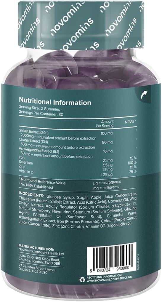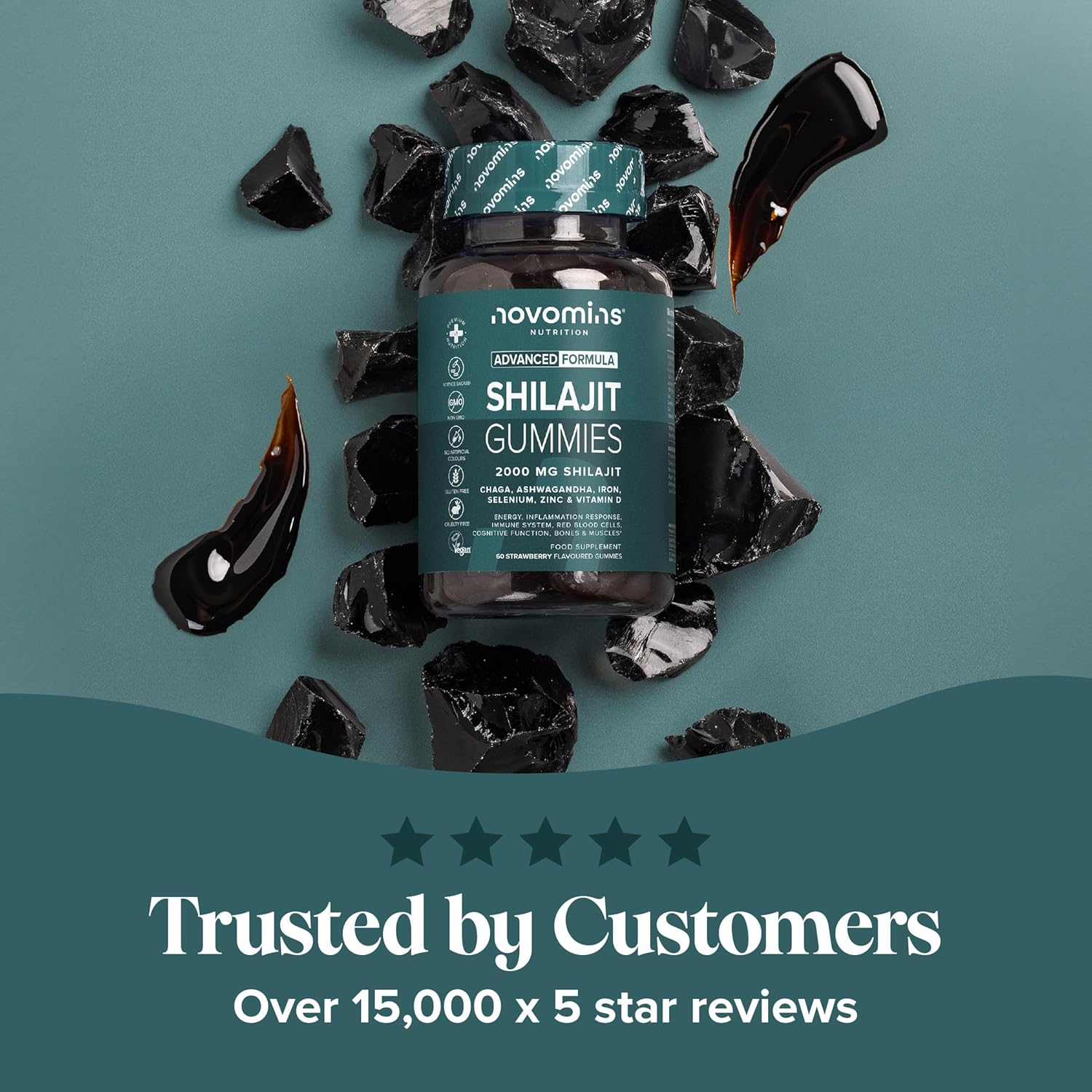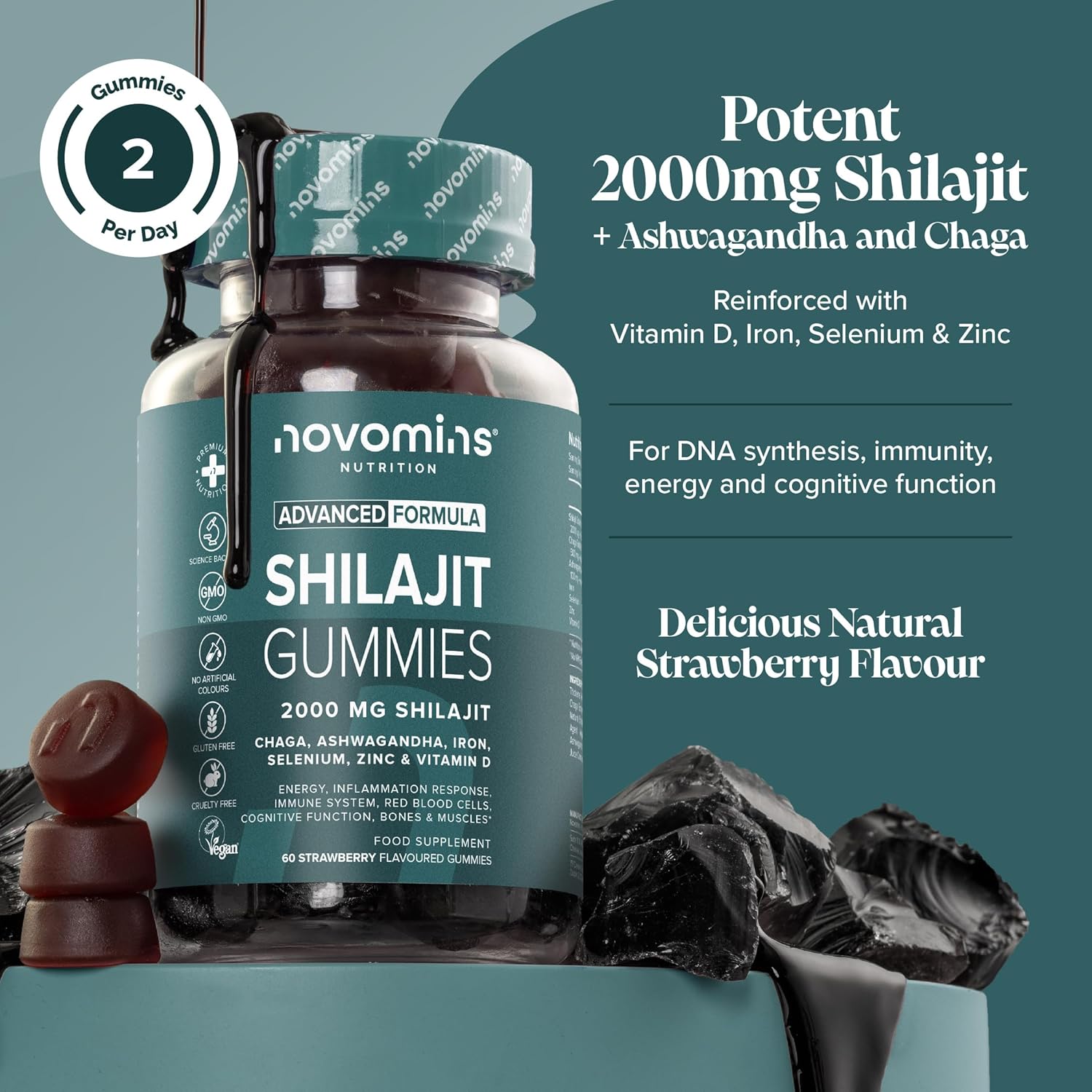 Shilajit Gummies – 2000Mg High Strength Shilajit With Ashwagandha, Chaga, Zinc, Iron, Selenium & Vitamin D – Himalayan Gummies For Men & Women – Energy, Brain & Immune Support – Novomins