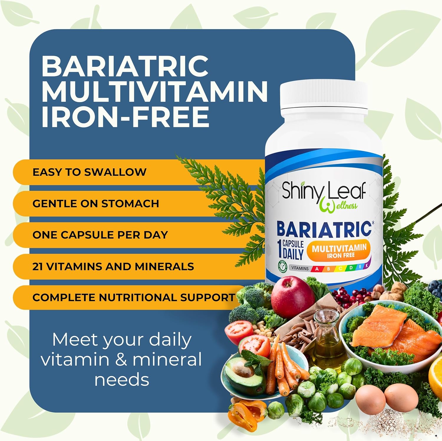 Shiny Leaf Bariatric Multivitamin Without Iron - Vitamins For Gastric Bypass & Sleeve, 1 Daily Capsule W Vitamin A, C, D, Biotin, Zinc, B12, K, Vegetarian, Soy-Free, Gmp Cert., Made In Usa (90 Ct.)