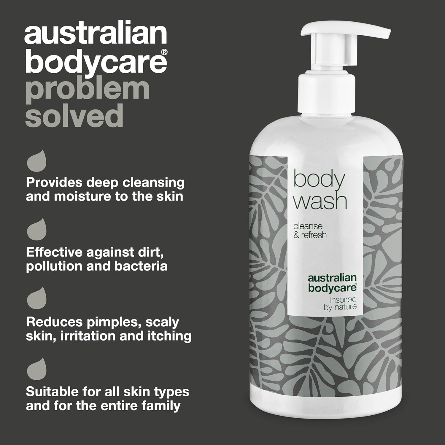About this item ?? Made For: Designed for anyone seeking relief from skin concerns like spots, pimples, athlete’s foot, ringworm, jock itch, and body odor. Perfect for those with oily, acne-prone skin or those looking to combat smelly feet and body odor. ?? What it does: This body wash deeply cleanses and purifies the skin, effectively reducing impurities and bacteria. With its antifungal and antibacterial properties, it helps prevent breakouts, soothe irritation, and eliminate unpleasant odors, leaving your skin feeling fresh and revitalized. ?? Why it’s special: Formulated with 4-Terpineol, known from Tea Tree Oil, this body wash also includes Allantoin to calm and hydrate the skin, and Zinc PCA to regulate oil production. Its refreshing formula not only cleans but also supports healthier, clearer skin. ?? Results: You’ll notice a cleaner, fresher feeling after the first use. With regular application, expect visible improvements in spots, blemishes, and skin irritation within 1-3 weeks. Continued use helps maintain healthy, balanced skin. ?? How to use: Apply a generous amount to wet skin, massage into a lather, and rinse off thoroughly. Use daily for best results, and follow up with a moisturizer for enhanced skin hydration. › See more product details,?? Made For: Designed for anyone seeking relief from skin concerns like spots, pimples, athlete’s foot, ringworm, jock itch, and body odor. Perfect for those with oily, acne-prone skin or those looking to combat smelly feet and body odor,?? What it does: This body wash deeply cleanses and purifies the skin, effectively reducing impurities and bacteria. With its antifungal and antibacterial properties, it helps prevent breakouts, soothe irritation, and eliminate unpleasant odors, leaving your skin feeling fresh and revitalized,?? Why it’s special: Formulated with 4-Terpineol, known from Tea Tree Oil, this body wash also includes Allantoin to calm and hydrate the skin, and Zinc PCA to regulate oil production. Its refreshing formula not only cleans but also supports healthier, clearer skin,?? Results: You’ll notice a cleaner, fresher feeling after the first use. With regular application, expect visible improvements in spots, blemishes, and skin irritation within 1-3 weeks. Continued use helps maintain healthy, balanced skin,?? How to use: Apply a generous amount to wet skin, massage into a lather, and rinse off thoroughly. Use daily for best results, and follow up with a moisturizer for enhanced skin hydration