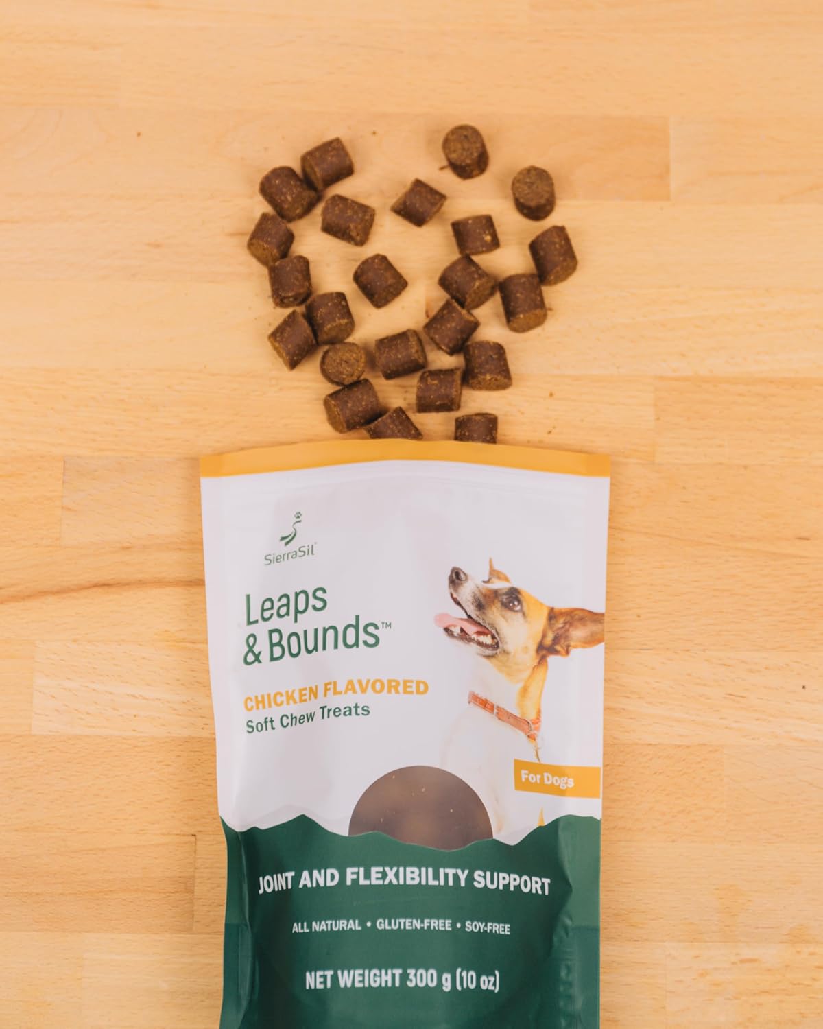 In Leaps & Bounds, SierraSil is blended with natural ingredients, including real chicken to create a treat your dog will crave. Great tasting and great results for mobility