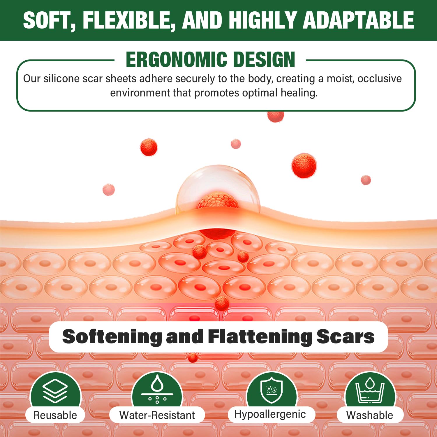 Non-Irritating & Effective: Made with 100% medical-grade soft silicone, our scar sheets provide pain-free application and removal, promoting natural healing by enhancing skin hydration and fibroblast production for softer, flatter scars