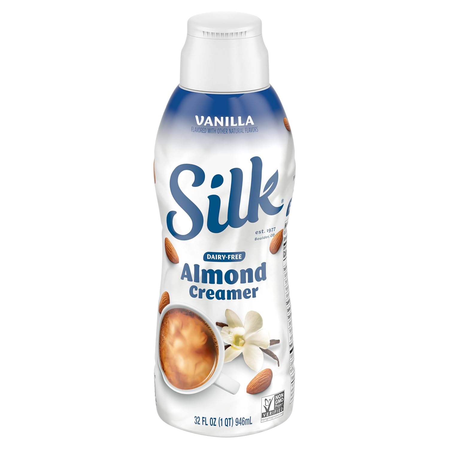 About this item Lusciously Creamy: One 32 fl oz Silk Vanilla Dairy Free, Gluten Free Almond Creamer Carton Nothing but Delicious: This vanilla flavored creamer has no dairy, lactose, carrageenan or gluten, just smooth and creamy goodness Have a “Me” Moment: Add these non dairy creamers to coffee, smoothies and shakes to make your mornings - or any time of day - more special Only The Best: Silk dairy free creamer is the 1 brand of plant based, dairy free creamers, based on national sales data More Than Great Taste: Silk is passionate about doing right by the planet, which is why we're helping almond farmers implement regenerative agriculture practices See more product details,Lusciously Creamy: One 32 fl oz Silk Vanilla Dairy Free, Gluten Free Almond Creamer Carton,Nothing but Delicious: This vanilla flavored creamer has no dairy, lactose, carrageenan or gluten, just smooth and creamy goodness,Have a “Me” Moment: Add these non dairy creamers to coffee, smoothies and shakes to make your mornings - or any time of day - more special,Only The Best: Silk dairy free creamer is the 1 brand of plant based, dairy free creamers, based on national sales data,More Than Great Taste: Silk is passionate about doing right by the planet, which is why we're helping almond farmers implement regenerative agriculture practices