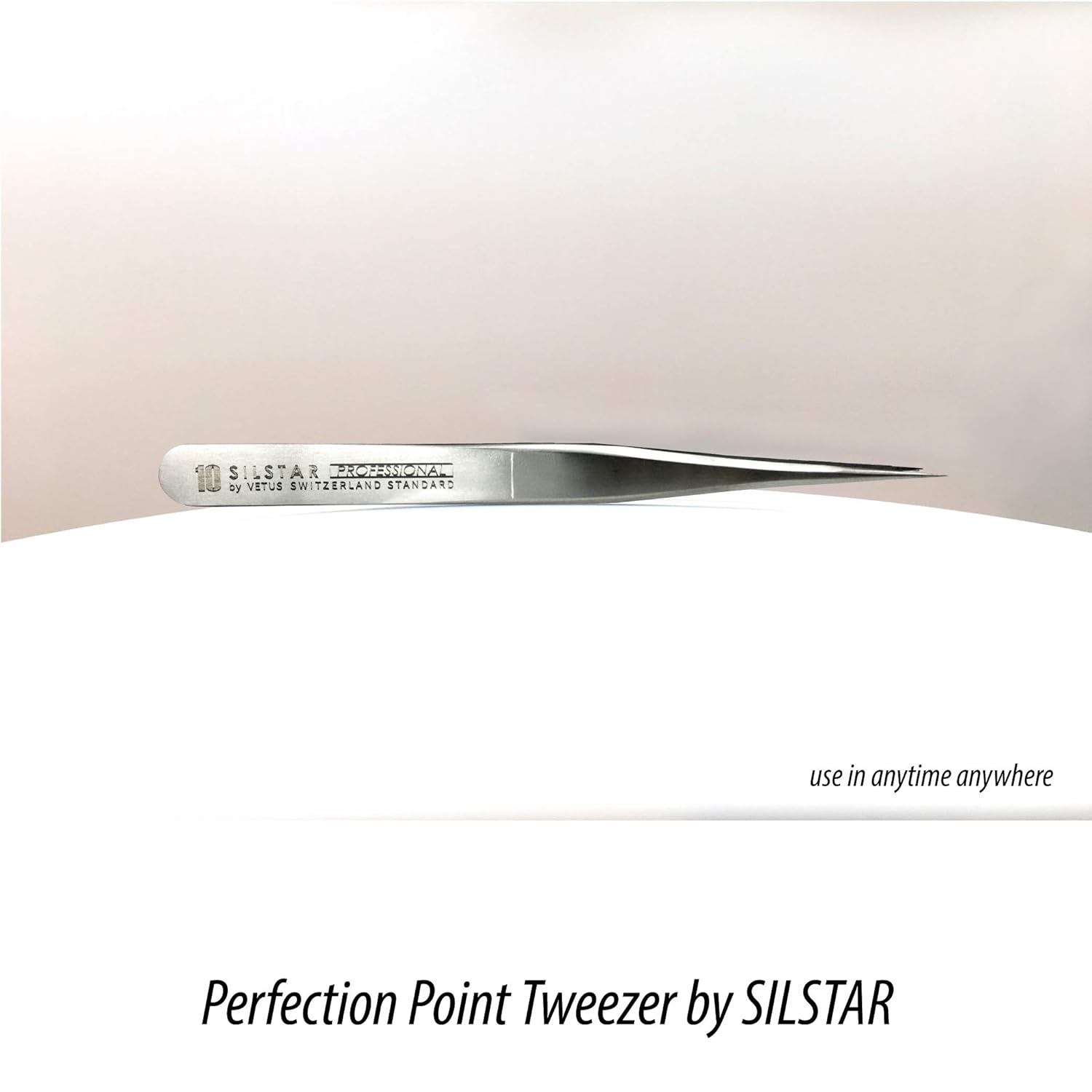 About this item EYELASH EXTENSION USE - SILSTAR PROFESSIONAL PERFECTION POINT TWEEZERS lives up to its name! It is perfect for eyelash extension use! You can easily pick up small pieces of lashes with the tweezer's fine point. MULTI-FUNCTIONAL - SILSTAR PROFESSIONAL PERFECTION POINT TWEEZERS can also be used at home to pick up small pieces in soldering, mechanics, laboratory micro-work, jewels, crafts, and hobbies. STAINLESS STEEL THAT LAST LONG - SILSTAR PROFESSIONAL PERFECTION POINT TWEEZER are made of high-quality stainless steel. They are made strong and resistant to the nature, non-magnetic, and they are also anti-rust. For a clean shave, thread and wax finish. EASY GRIP - SILSTAR PROFESSIONAL PERFECTION POINT TWEEZER body shape isergonomically engineered and we made sure that they are easy to hold and are very anti-slip. MULTI-FUNCTIONAL - SILSTAR PROFESSIONAL PERFECTION POINT TWEEZERS can also be used at home to pick up small pieces in soldering, mechanics, laboratory micro-work, jewels, crafts, and hobbies.  See more product details,EYELASH EXTENSION USE - SILSTAR PROFESSIONAL PERFECTION POINT TWEEZERS lives up to its name! It is perfect for eyelash extension use! You can easily pick up small pieces of lashes with the tweezer's fine point,MULTI-FUNCTIONAL - SILSTAR PROFESSIONAL PERFECTION POINT TWEEZERS can also be used at home to pick up small pieces in soldering, mechanics, laboratory micro-work, jewels, crafts, and hobbies,STAINLESS STEEL THAT LAST LONG - SILSTAR PROFESSIONAL PERFECTION POINT TWEEZER are made of high-quality stainless steel. They are made strong and resistant to the nature, non-magnetic, and they are also anti-rust. For a clean shave, thread and wax finish,EASY GRIP - SILSTAR PROFESSIONAL PERFECTION POINT TWEEZER body shape isergonomically engineered and we made sure that they are easy to hold and are very anti-slip,MULTI-FUNCTIONAL - SILSTAR PROFESSIONAL PERFECTION POINT TWEEZERS can also be used at home to pick up small pieces in soldering, mechanics, laboratory micro-work, jewels, crafts, and hobbies
