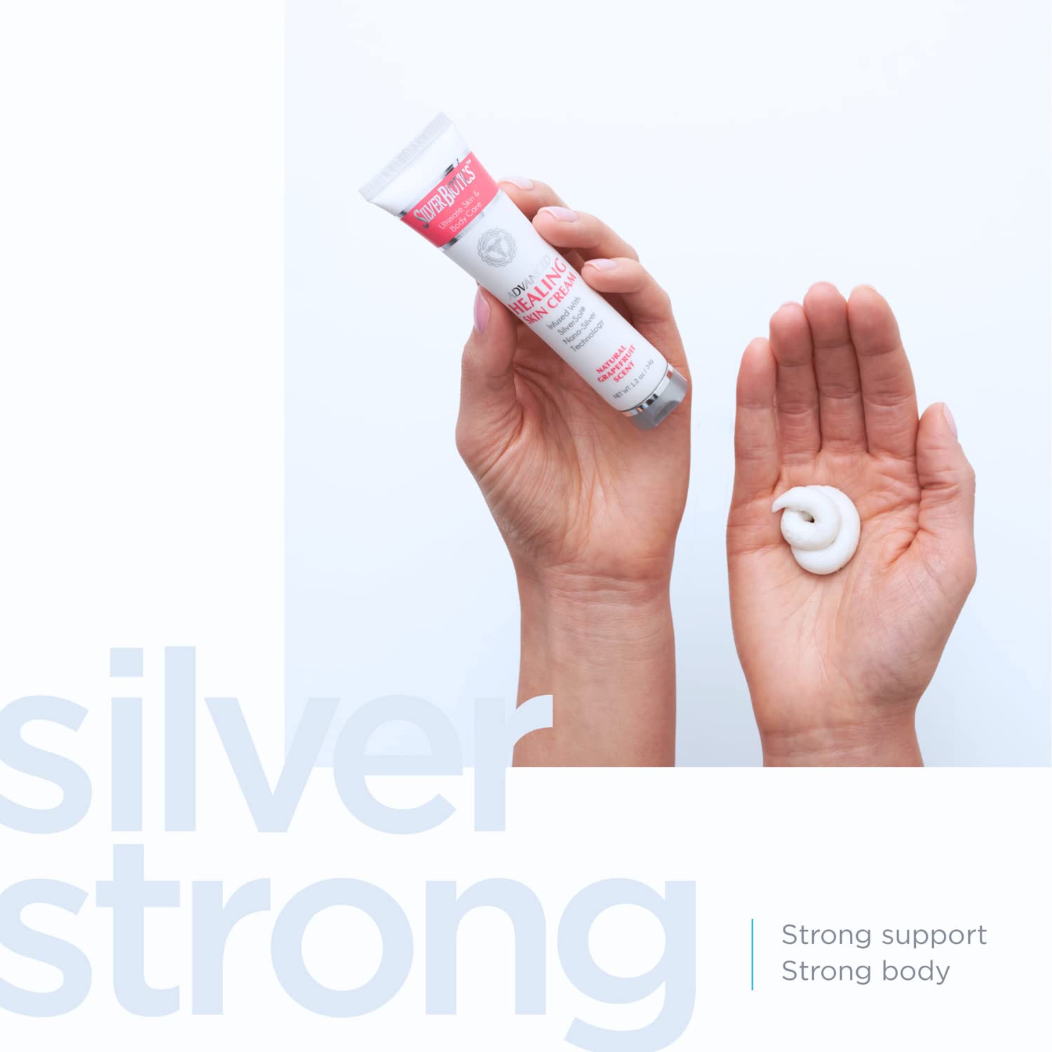 About this item  HEALING AND MOISTURIZING: Our Nano Silver Grapefruit lotion cream is specially formulated to provide superior healing and moisturizing benefits for your skin. Infused with nano silver particles and the relaxing scent of lavender, it deeply nourishes and soothes dry, cracked, and irritated skin.  ADVANCED NANO TECHNOLOGY: Our lotion cream features advanced nano technology that allows the silver particles to penetrate deep into the skin for maximum absorption and effectiveness.  NATURAL INGREDIENTS: We believe in using only the best natural ingredients to create our products. Our Nano Silver Grapefruit lotion cream is made with high-quality, all-natural ingredients that are gentle and safe for all skin types.  LIGHTWEIGHT AND NON-GREASY: Unlike other heavy, greasy lotions, our Nano Silver Lavender lotion cream is lightweight and non-greasy, making it easy to apply and quickly absorbed by the skin. It leaves your skin feeling soft, smooth, and hydrated all day long.  INGREDIENTS: Contains SilverSol, Hyaluronic Acid, Coconut Oil and Vitamin E Grapefruit  See more product details, HEALING AND MOISTURIZING: Our Nano Silver Grapefruit lotion cream is specially formulated to provide superior healing and moisturizing benefits for your skin. Infused with nano silver particles and the relaxing scent of lavender, it deeply nourishes and soothes dry, cracked, and irritated skin, ADVANCED NANO TECHNOLOGY: Our lotion cream features advanced nano technology that allows the silver particles to penetrate deep into the skin for maximum absorption and effectiveness, NATURAL INGREDIENTS: We believe in using only the best natural ingredients to create our products. Our Nano Silver Grapefruit lotion cream is made with high-quality, all-natural ingredients that are gentle and safe for all skin types, LIGHTWEIGHT AND NON-GREASY: Unlike other heavy, greasy lotions, our Nano Silver Lavender lotion cream is lightweight and non-greasy, making it easy to apply and quickly absorbed by the skin. It leaves your skin feeling soft, smooth, and hydrated all day long, INGREDIENTS: Contains SilverSol, Hyaluronic Acid, Coconut Oil and Vitamin E Grapefruit