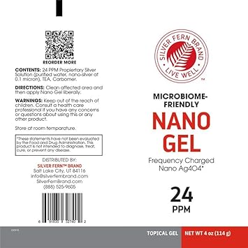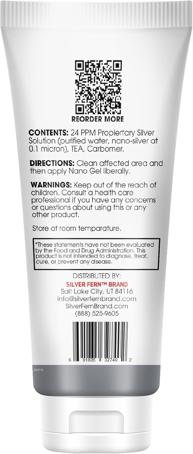 About this item Silver Fern Brand Nano Gel – Advanced Frequency-Charged Silver – Infused with nano Ag4O4 silver, this powerful gel helps cleanse and protect the skin from environmental stressors, promoting a balanced and healthy complexion. Supports Skin Recovery – Designed to assist with minor cuts, abrasions, burns, and other common skin concerns, Nano Gel offers soothing relief and helps maintain skin integrity. Microbiome-Friendly Formula – Unlike traditional skin products, Nano Gel helps support a balanced skin microbiome, keeping your skin in harmony without harsh chemicals. Fast-Absorbing & Non-Greasy – This lightweight gel applies smoothly, absorbs quickly, and leaves no sticky residue—perfect for daily use on any skin type. GRAS Certified & Safe for Daily Use – Formulated with clinically researched ingredients, Nano Gel meets high safety standards, making it a trusted addition to your skincare routine. See more product details, Silver Fern Brand Nano Gel – Advanced Frequency-Charged Silver – Infused with nano Ag4O4 silver, this powerful gel helps cleanse and protect the skin from environmental stressors, promoting a balanced and healthy complexion. , Supports Skin Recovery – Designed to assist with minor cuts, abrasions, burns, and other common skin concerns, Nano Gel offers soothing relief and helps maintain skin integrity. , Microbiome-Friendly Formula – Unlike traditional skin products, Nano Gel helps support a balanced skin microbiome, keeping your skin in harmony without harsh chemicals. , Fast-Absorbing & Non-Greasy – This lightweight gel applies smoothly, absorbs quickly, and leaves no sticky residue—perfect for daily use on any skin type. , GRAS Certified & Safe for Daily Use – Formulated with clinically researched ingredients, Nano Gel meets high safety standards, making it a trusted addition to your skincare routine.