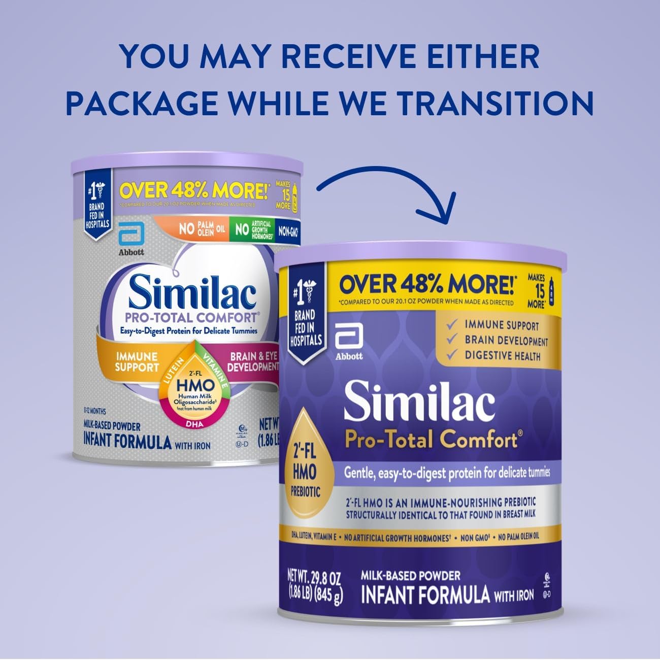 Similac Pro-Total Comfort Infant Formula With Iron, Gentle, Easy-To-Digest Formula, With 2'-Fl Hmo For Immune Support, Non-Gmo, Baby Formula Powder, 29.8-Oz Can, Pack Of 6