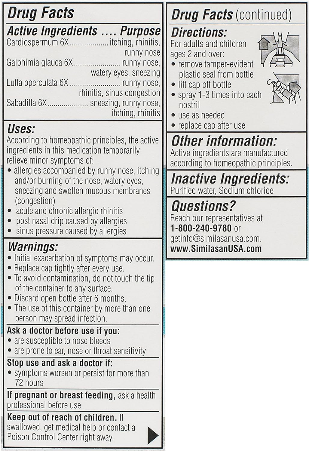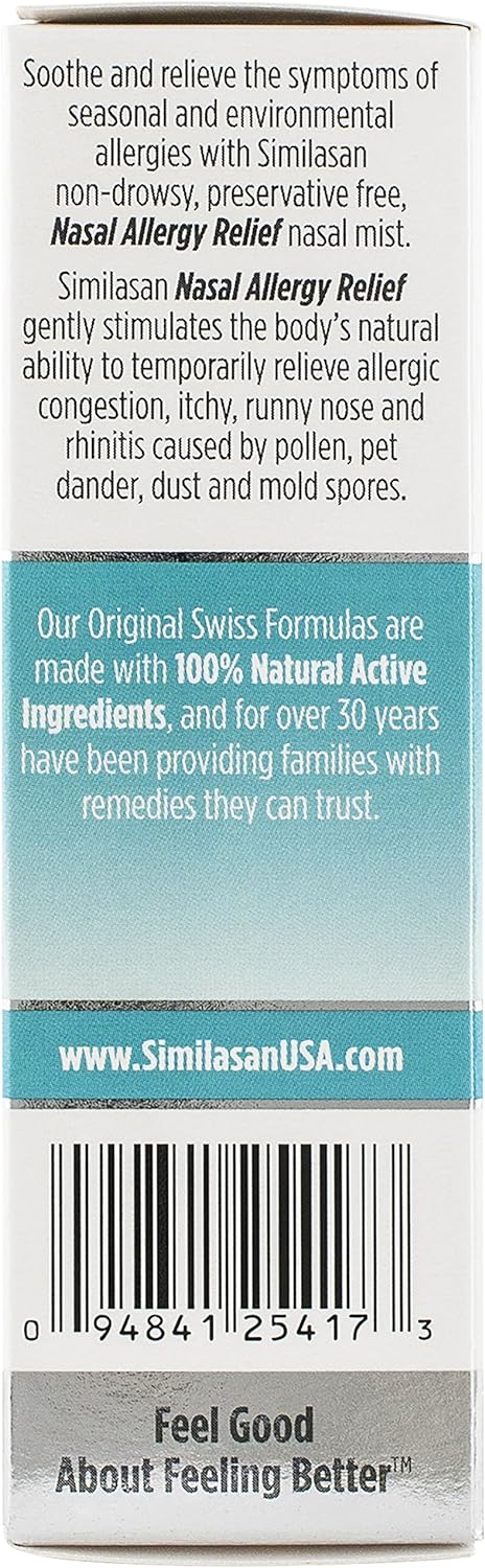 Temporarily relieve the symptoms of seasonal and environmental allergies*. Let Similasan Nasal Allergy Relief ease your allergy symptoms so you can better enjoy your day. Similasan Nasal Allergy Relief nasal mist gently stimulates the body’s natural ability to temporarily relieve allergic congestion and itchy, runny nose caused by pollen, pet dander, dust and mold spores. Similasan of Switzerland works without antihistamines by using natural botanical extracts used for over 200 years to stimulate the body's natural defenses and target the root cause, so you can feel better without harsh chemicals. Go ahead, use as often as needed. Trusted by pharmacists and families in Switzerland for over 35 years, Similasan is a leading Swiss brand of remedies that use natural active ingredients instead of harsh chemicals to keep families healthy. Our state of the art facility located near the Swiss Alps makes over 190 popular remedies for children and adults: cough and cold, eye care, ear care, nasal allergies and more. Similasan has been voted by the readers of Reader's Digest the most trusted Swiss healthcare brand 14 years in a row. *The uses of our products are in compliance with official Homeopathic Compendia. They were not the subject of approved applications reviewed by the Food and Drug Administration prior to marketing
