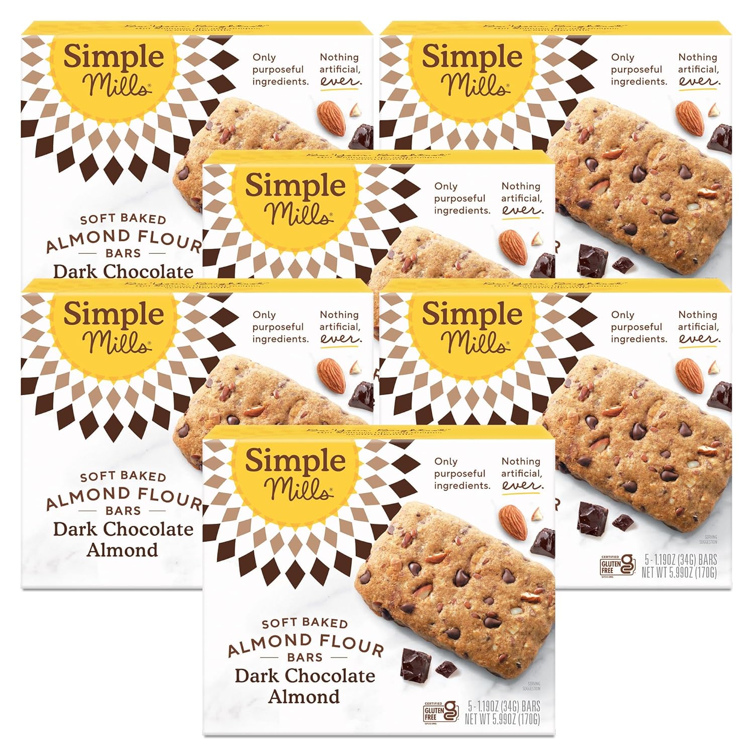 Simple Mills Almond Flour Snack Bars, Dark Chocolate Almond - Gluten Free, Made With Organic Coconut Oil, Breakfast Bars, Healthy Snacks, Paleo Friendly, 6 Ounce (Pack Of 6)