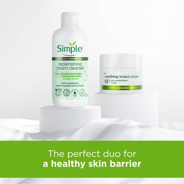 1.Deep Cleansing, Super Skin-Softening. Simple Replenishing Cream Cleanser Transforms Dry Skin With Every Wash, Restoring Hydration For Plump, Supple Results. 2.Effective, Cream-To-Foam Formula. Every Cleanse Lifts Away All Traces Of Make-Up, Pollution, And Impurities While Nourishing And Repairing Skin’S Natural Moisture Barrier. 3.Skin-Boosting Formula, Powered By 11% Ceramide Boosters + Hyaluronic Acid, Helps Replenish Skin’S Natural Lipids And Protect Against Hydration Loss. 4.100% Sulphate-Free And Soap-Free. Enriched With Dirt-Busting Micelles Together With Amino Acid Cleansing Molecules, To Thoroughly Cleanse Without Stripping Your Skin. 5.Our Simple Promise. With A Formula That’S 99% Biodegradable And Vegan Peta Approved, Our Cleansing Wash Is Kind To Skin And The Planet. 6.Gentle And Effective For Even The Most Sensitive Skin. This Dermatologically Tested And Hypoallergenic Formula Contains No Harsh Chemicals, No Alcohol, No Artificial Colour Or Perfume. Cleanse, Restore And Transform Your Skin With Simple Replenishing Cream Cleanser – Expertly Formulated With Hard-Working, Yet Gentle Actives For Instant Results. Powered By 11% Ceramide Boosters To Support Skin’S Natural Ceramide Production And Lipid Barrier, This Ultra-Comforting, Creamy Cleansing Wash Lathers Into A Rich Foam To Deeply Cleanse, While Strengthening Skin From Within. But It Doesn’T Stop There. Hyaluronic Acid And Panthenol Supercharge With Plumping Hydration To Prevent Moisture Loss, While Nourishing Dry Skin With Everything It Needs To Stay Healthy. The Result? Instantly Soft, Supple, Lasting Hydration. 100% Sulphate-Free And Soap Free. Every Wash Thoroughly (But Mildly) Lifts Away All Traces Of Make-Up, Pollution, And Impurities, Without Stripping Your Skin – Thanks To The Double-Action Blend Of Dirt-Busting Micelles And Amino Acid Cleansing Clusters. Skin Is Left Ultra-Comforted And Satisfyingly Clean. Boost Your Daily Routine: Squeeze A Small Amount Into Hands And Massage Onto Damp Skin. Rinse, Pat Dry And Follow With Your Favourite Simple Moisturiser To Lock In The Goodness. Like All Simple Products, This Replenishing Cream Cleanser Is Dermatologically Tested, Hypoallergenic, Contains No Harsh Chemicals And Is Free From Alcohol, Artificial Colours And Perfume. What’S More, The Formula Is 99% Biodegradable, Vegan Peta Approved, And Packaged In A Recyclable Bottle – Making It Kind To All Skin Types (Even Sensitive Skin) And The Planet