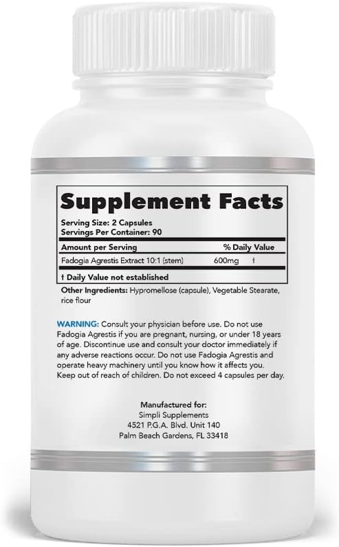 Simpli Supplements Fadogia Agrestis, 600Mg Per Serving @ 180 Capsules, Potent Extract To Boost Test For Muscle Growth &