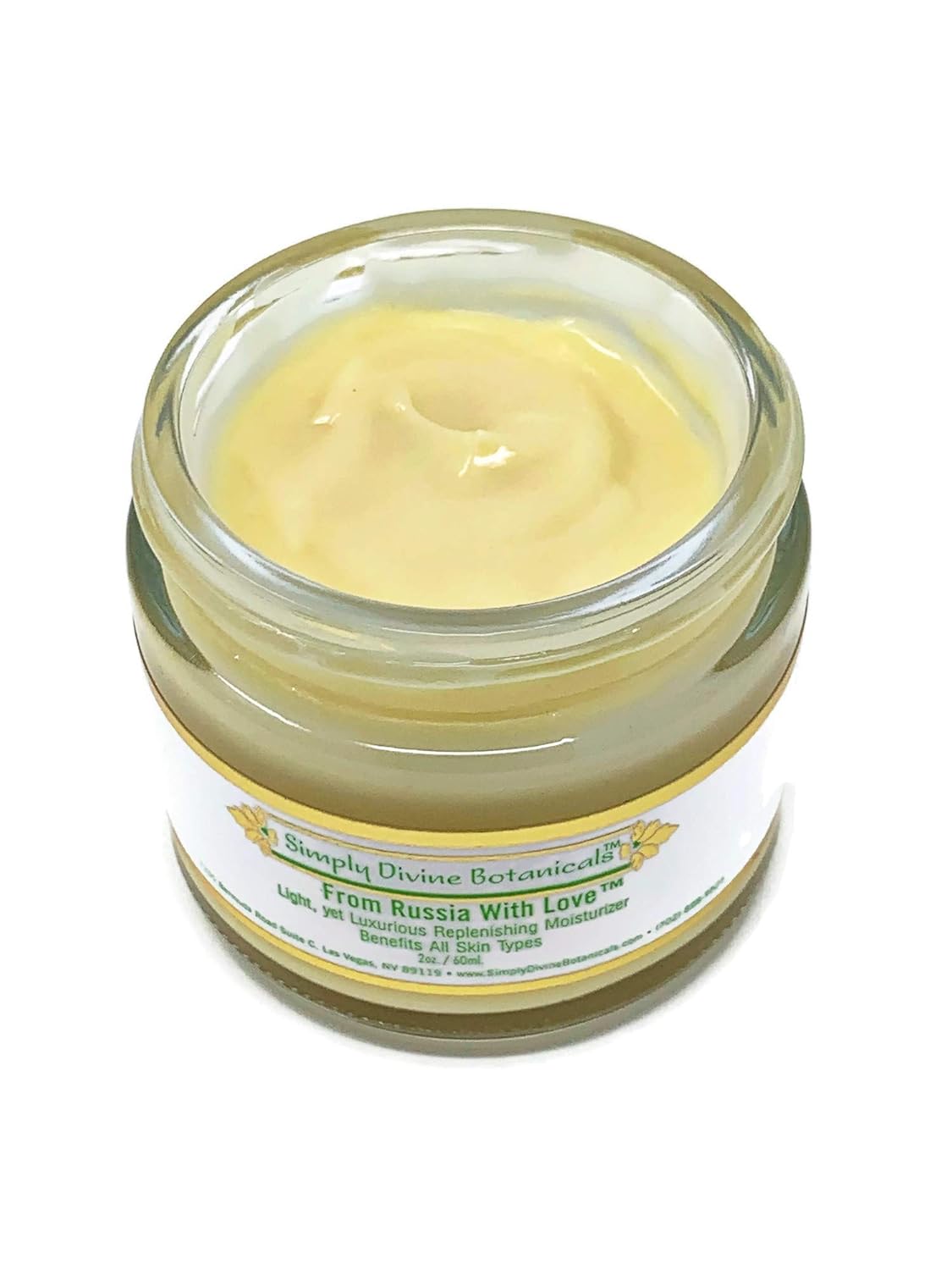 Simply Divine From Russia With Love, Natural And Organic Replenishing Moisturizer With Aloe Vera For All Skin Types, 2Oz