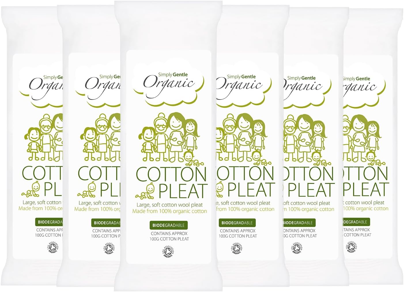 Simply Gentle Organic Cotton Wool Pleats - Perfect For Sensitive Skin - Pure Cotton Pleat With No Paraben Or Alcohol - Free From Odours Or Irritants - Hypoallergenic Soft Wool Pleat - (100G Pack Of 6)