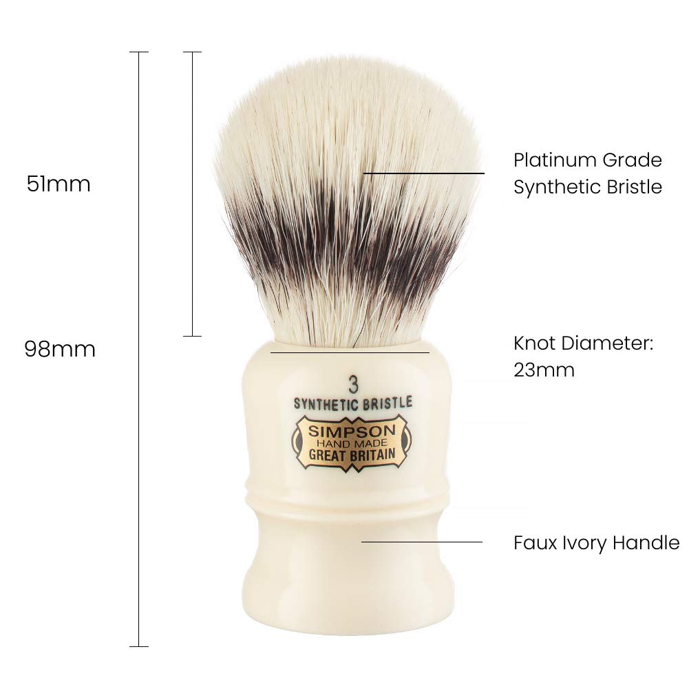 Simpsons Classic 1 - CL1 Synthetic Platinum High density Fibre Faux Handle Ivory Shaving Brush - Simpson Shaving Brushes - Wet Shave Deluxe Thick & Luxurious Lather Handle Dense & Extra Soft Bristles : Beauty & Personal Care