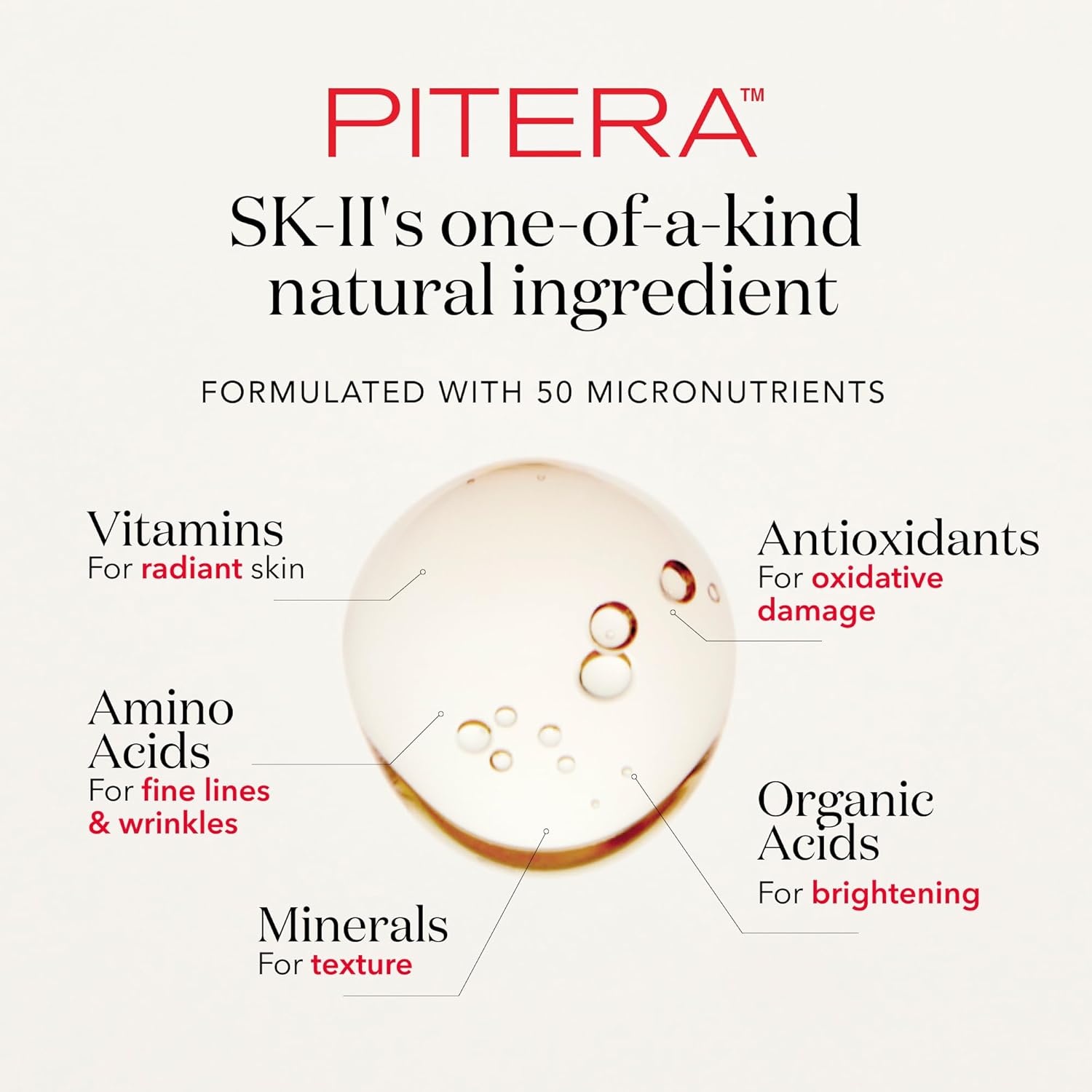 The Miracle of PITERA - PITERA is SK-II’s exclusive natural ingredient made from a unique fermentation process from a special yeast strain. It contains over 50 micro-nutrients including antioxidants, vitamins, minerals, and amino acids to nourish and improve your skin from multiple dimensions, reducing visible skin damage