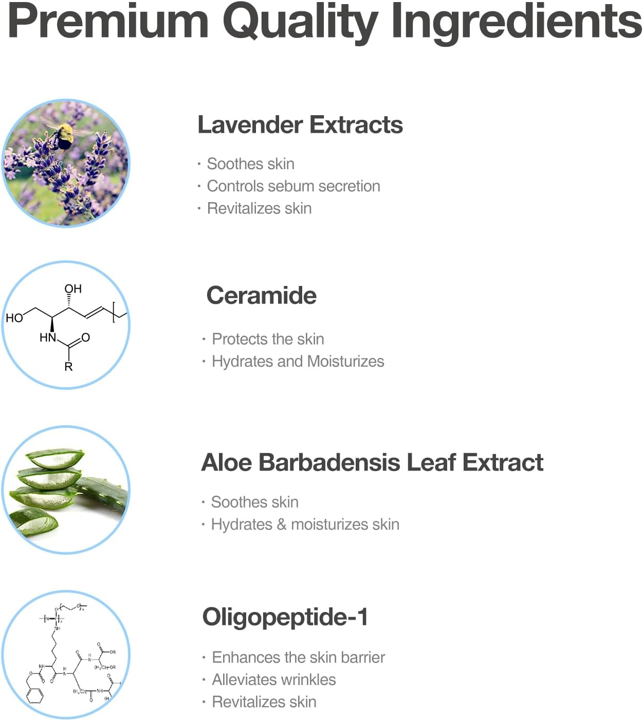 SKIN BALANCING TONER: Lavender Oil, Centella Asiatica Leaf, Peppermint Leaf, and Aloe Barbadnsis Leaf soothe, hydrate, and refresh the skin while maintaining the skinās natural balance